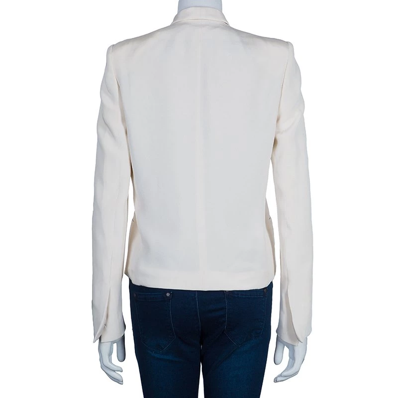This Stella McCartney’s cream blazer is a new-season twist on a house classic. Crafted from silk, it features long sleeves and fastens on the front. The blazer is beautifully designed with slip pockets on the front. You can wear it up or down.