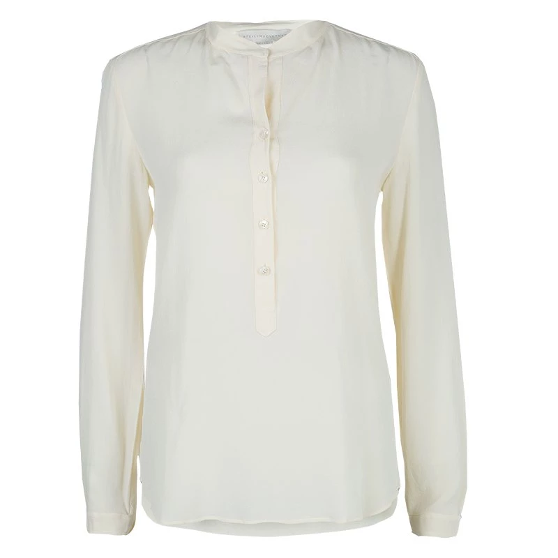 Get this simple yet sophisticated blouse by Stella McCartney. Crafted with silk, it features classic stand collars, button closures and well suited long sleeves.