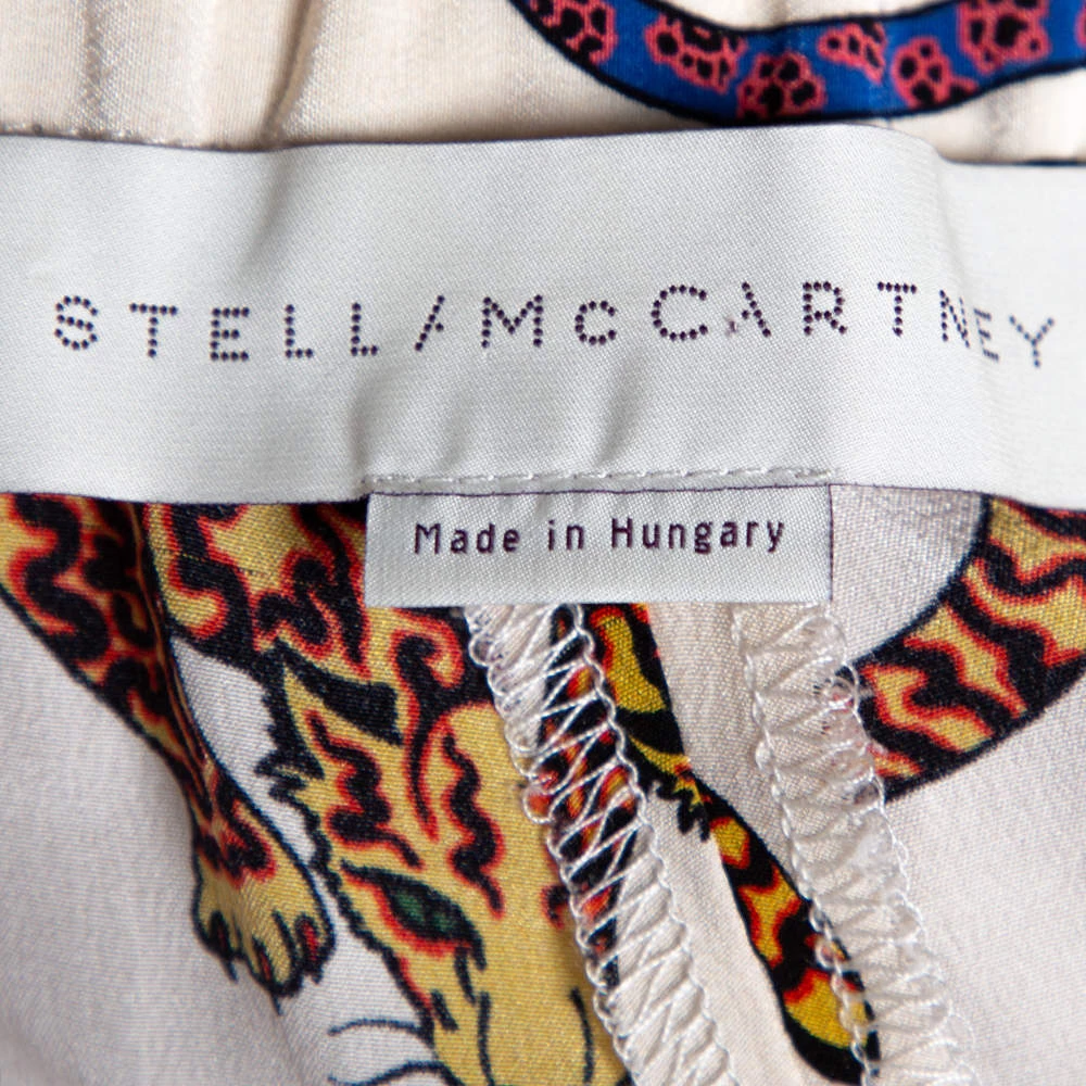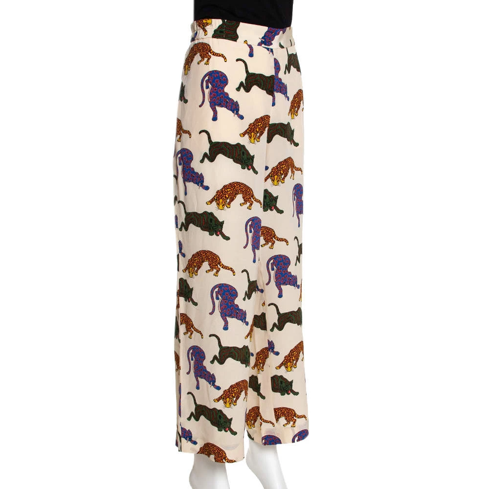 This pair of relaxed-fit cream pants from Stella McCartney is sure to bring you not just style but great comfort. It comes tailored from silk and designed with Wild Cat prints all over and an elasticized waistband.