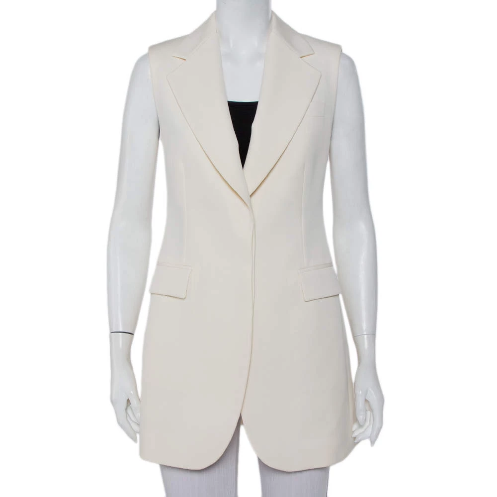 Grab attention by wearing this contemporary blazer from Stella McCartney. This comfortable and stylish cream blazer is designed in a sleeveless style from wool and features three pockets. Use this appealing and posh creation to flaunt your stylish look.