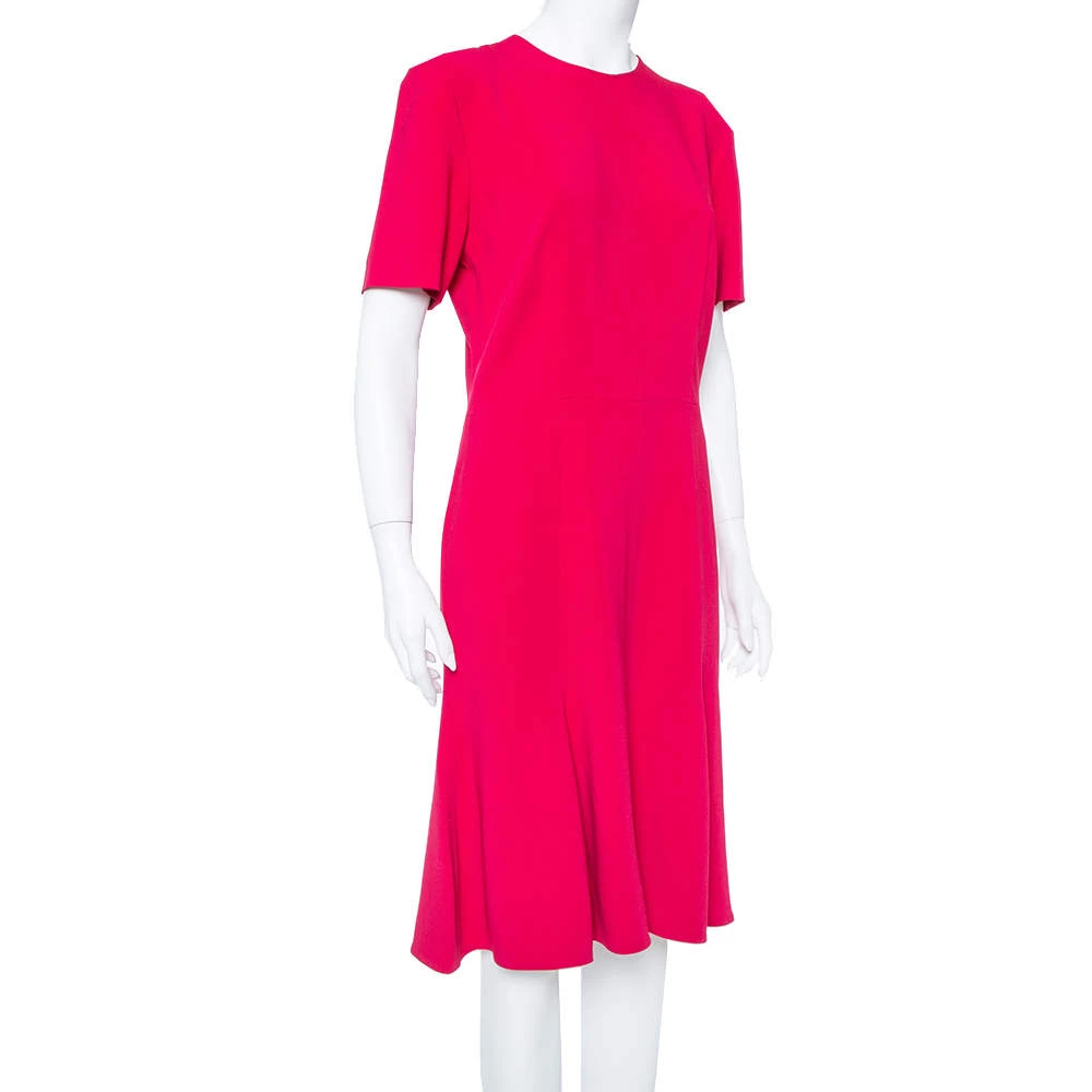 A simple yet elegant dress like this one by Stella McCartney is just what you need for multiple occasions. Tailored from a blend of fabrics in a crimson red hue, it features a flared hem, short sleeves, and a round neckline. Wear a metallic belt around the waist and match it with your sandals for a chic vibe.