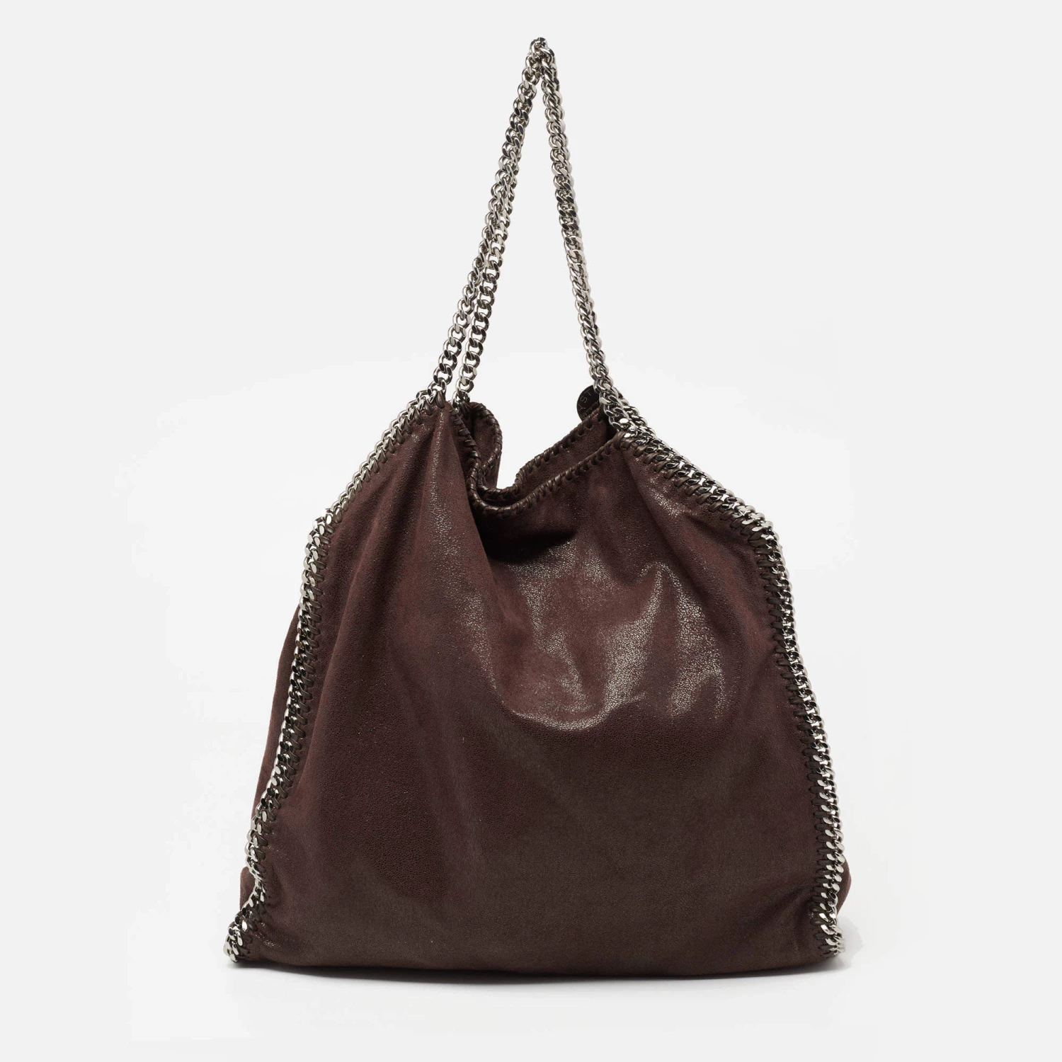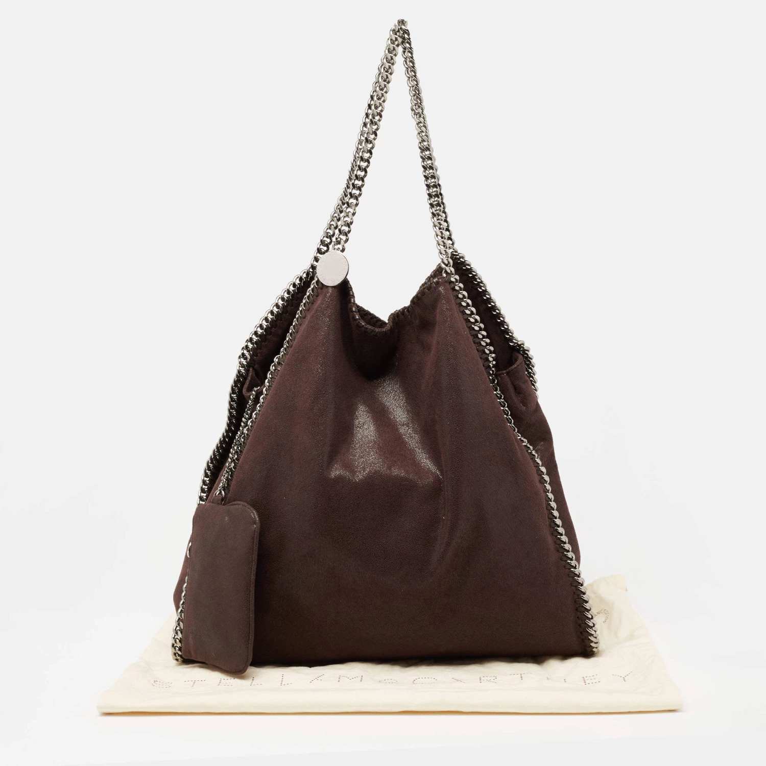 The chain whipstitch detailing beautifully outlines this Stella McCartney Falabella bag. Crafted from faux leather, it is adorned with silver-tone accents, and the bag can be carried with dual chain handles. The fabric-lined interior, along with an extra pouch, can safely store your party essentials.