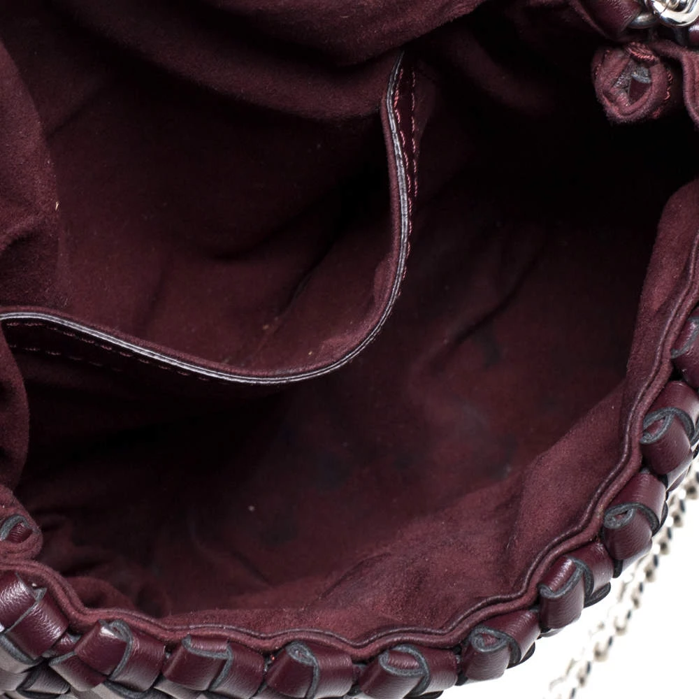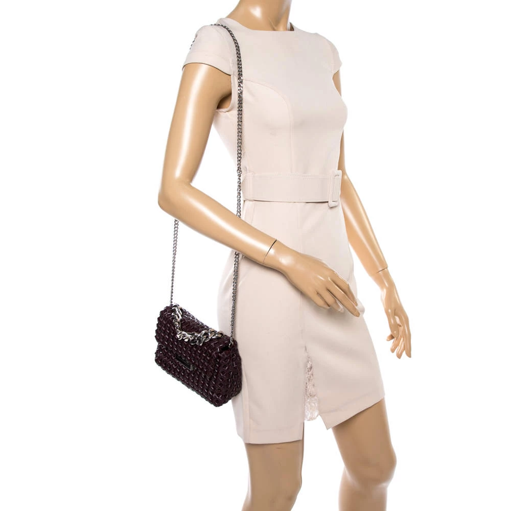 This Brandy Becks bag from Stella McCartney is simply fabulous! The dark burgundy creation has been crafted from faux leather and styled with a woven design that is enhanced with silver-tone hardware. It flaunts a logo detailed snap lock on the front and opens to a faux suede interior that can graciously accommodate your daily essentials. This beauty is complete with a chain-link handle and a shoulder sling.