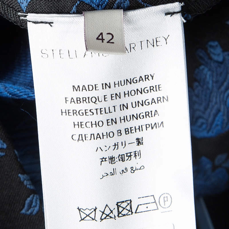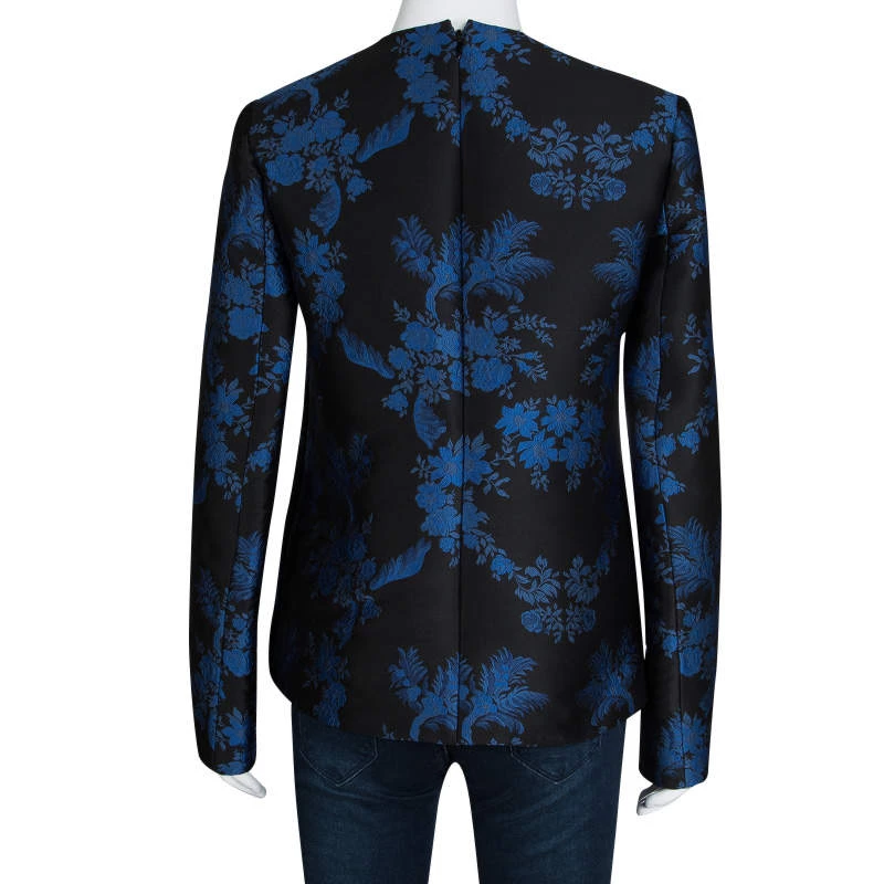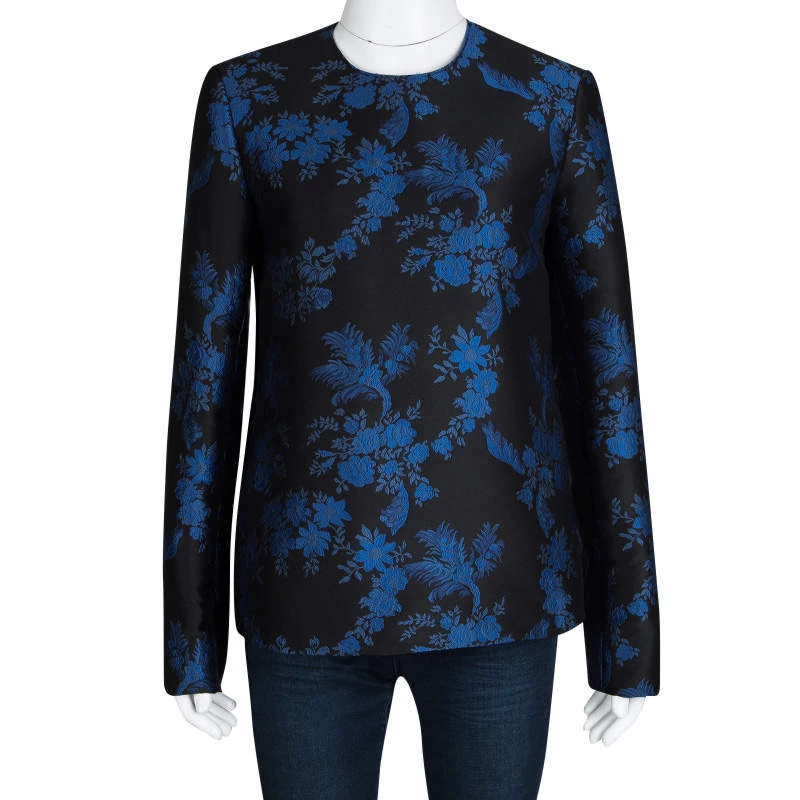 This top from Stella McCartney’s F/W 16 collection has us captivated! Set in a beautiful jacquard floral print in blue. The black top is patterned with long sleeves, high neck and back zipper opening. Flaunt this black beauty at high tea events, dinner meetings or formal office gatherings!
