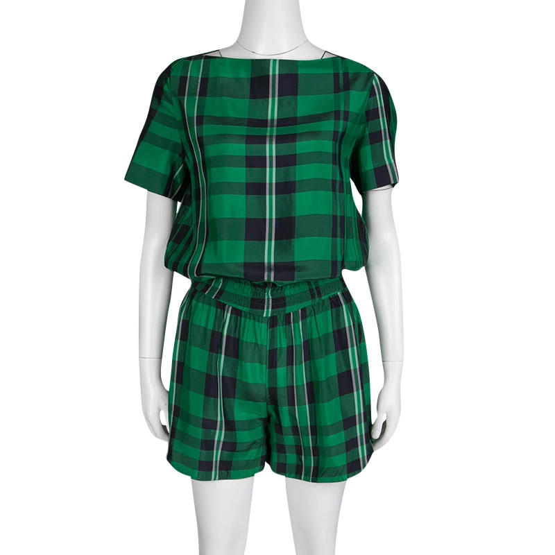 Don a relaxed look with these boat-neck rompers from Stella McCartney. Graced with gingham checks, they have a loose-fitting structure with a thick, elasticized waistline. These exude a contemporary charm ideal for any downtown roves.