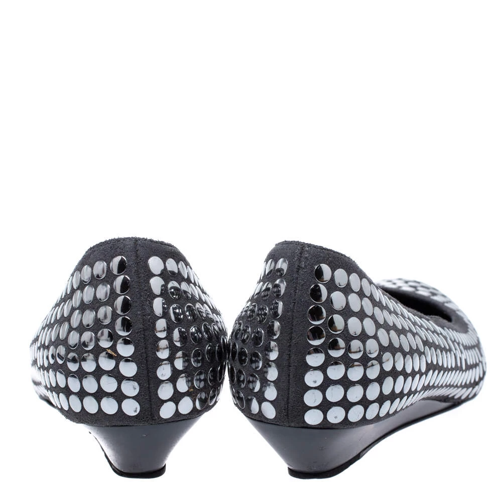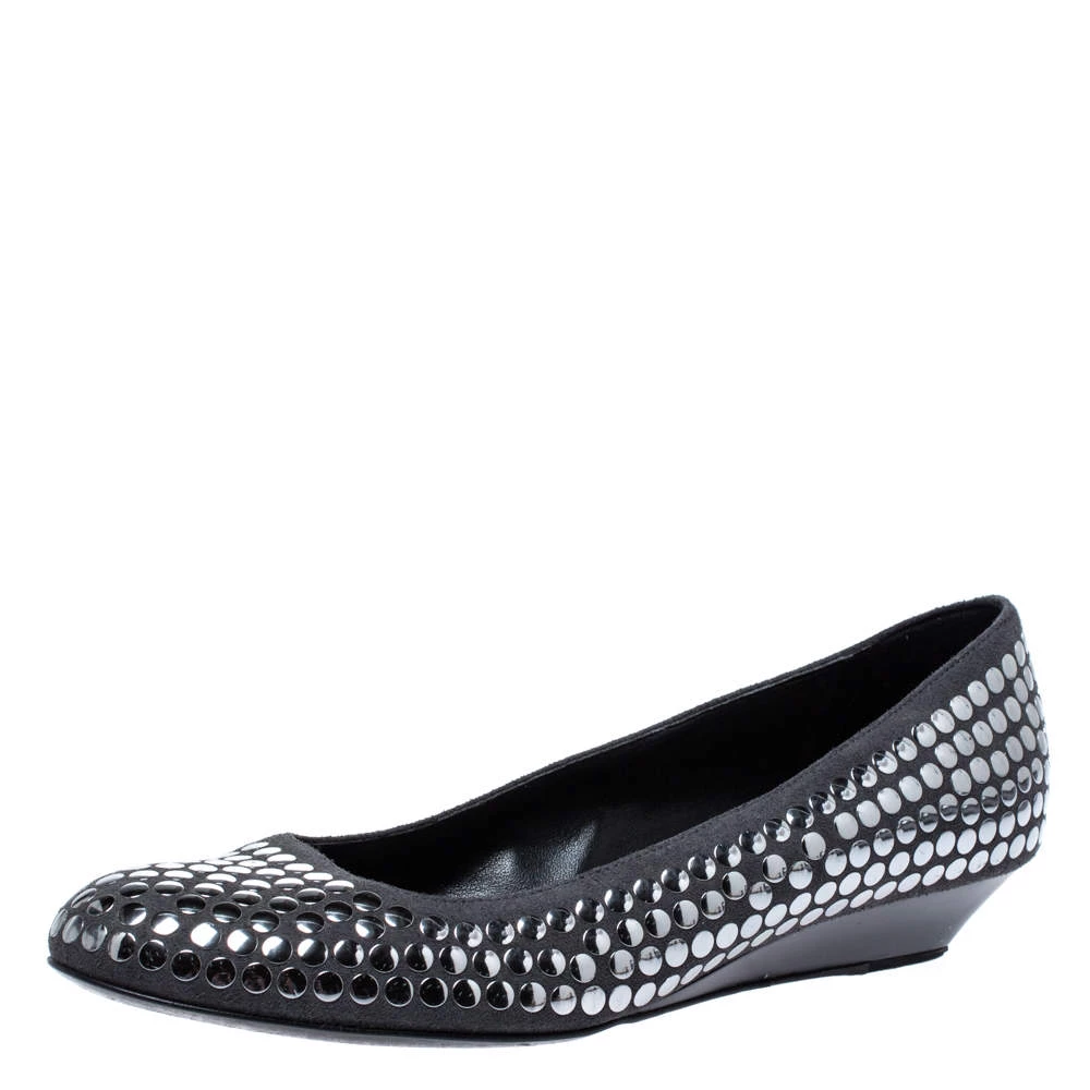 You’re all set to sparkle and shine in these lovely ballet flats from Stella McCartney. The grey flats are crafted from faux suede and feature an elegant silhouette. They flaunt round toes, exquisite stud detailing all over and comfortable faux leather-lined insoles. Pair them with maxi dresses or pleated skirts for your fashionable outings.