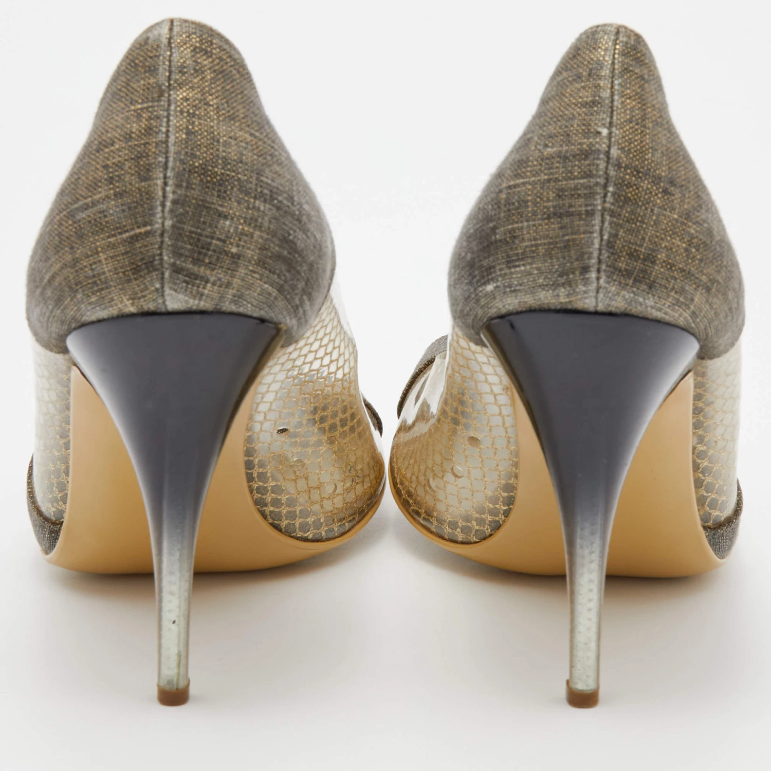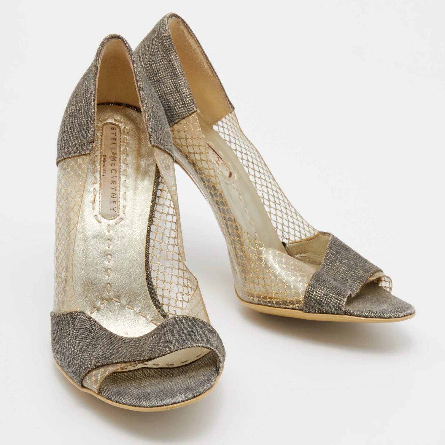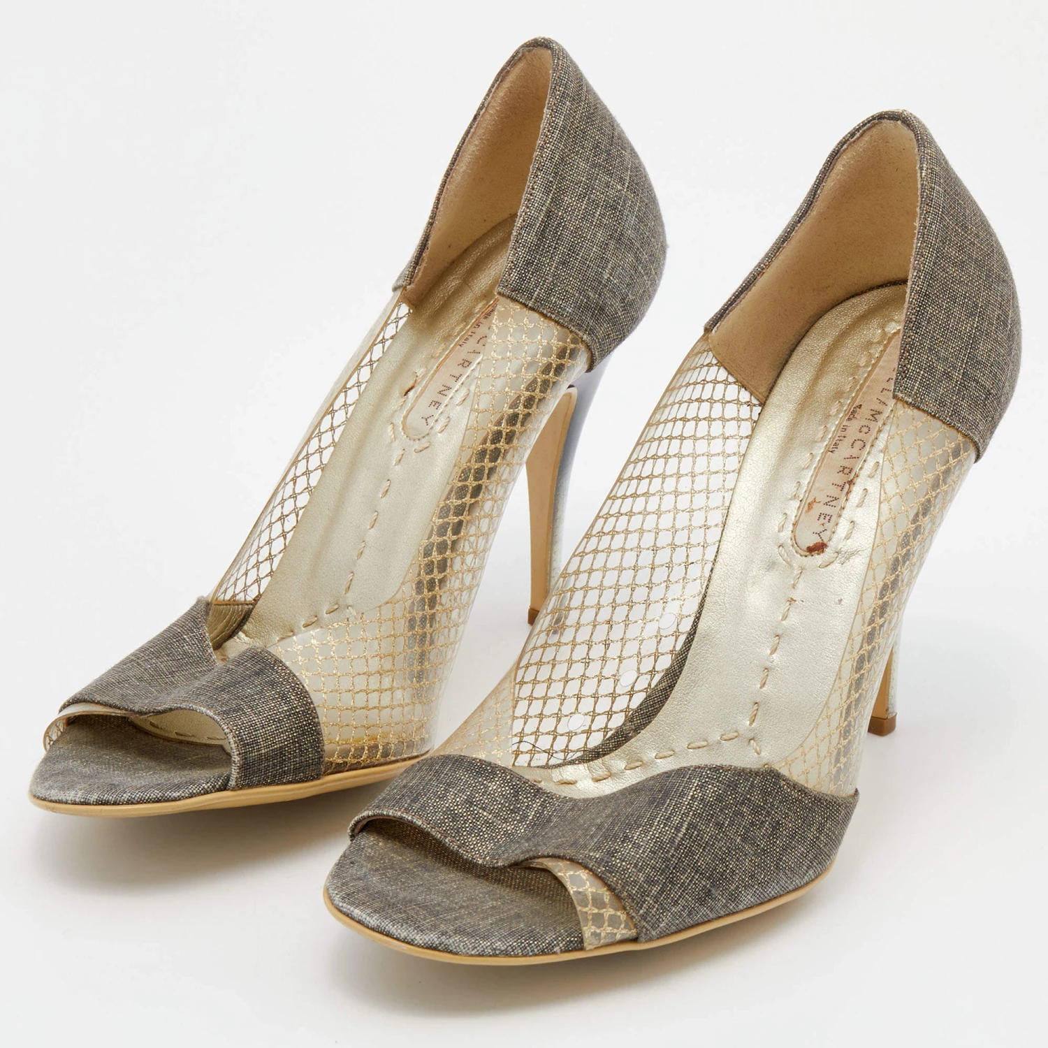Artistic skill and feminine sophistication take center stage in these beautiful pumps from Stella McCartney! They have been crafted from canvas and PVC and feature peep-toes with a slip-on style. They come equipped with comfortable faux leather insoles and stand tall on 9.5 cm ombre-effect heels.