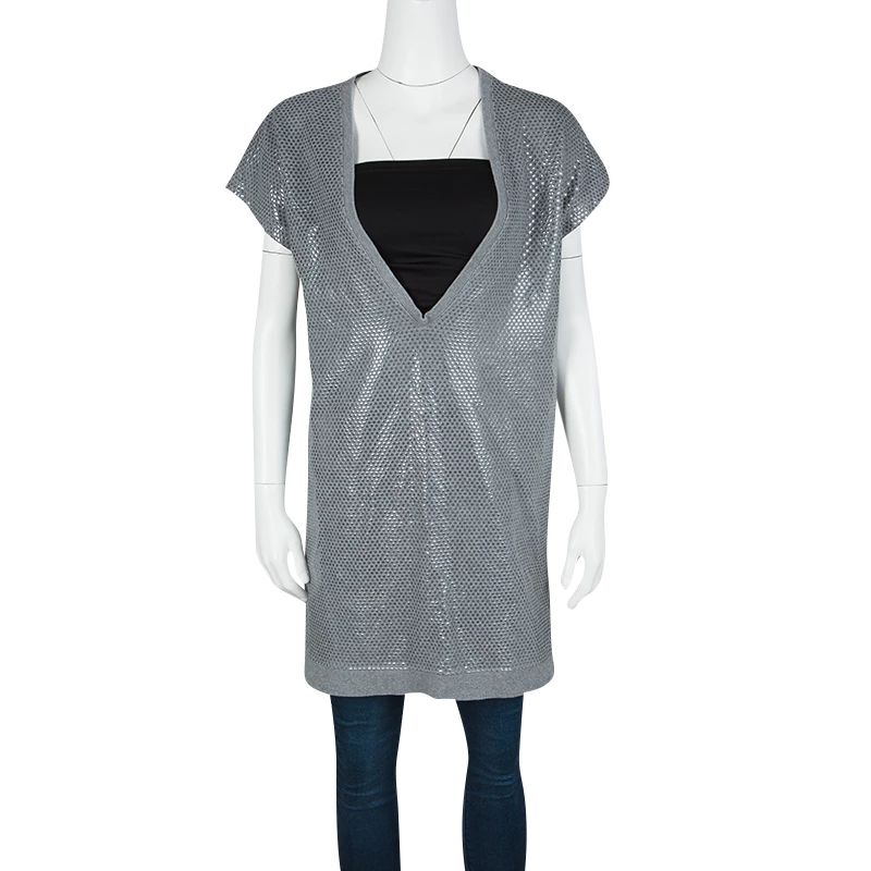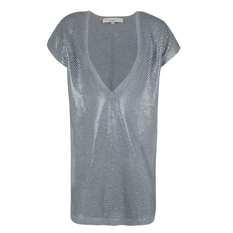 You can have the best look ever by wearing this exotically fashioned tunic from Stella McCartney. Its finely styled cap sleeves with dotted shiny sequins will be a perfect choice for a disco party. The extremely deep neckline will give the loosened fit and can be coupled with dress inner and tight jeans.