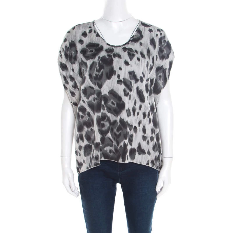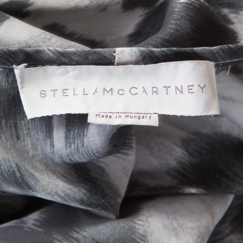 Lovely in a luxe way, this Stella McCartney blouse will be a nice addition to your closet. It comes tailored from silk in a boxy shape and designed with pleated sleeves and animal prints splayed all over.