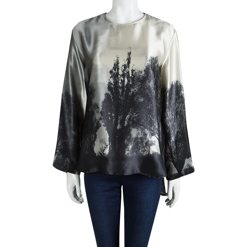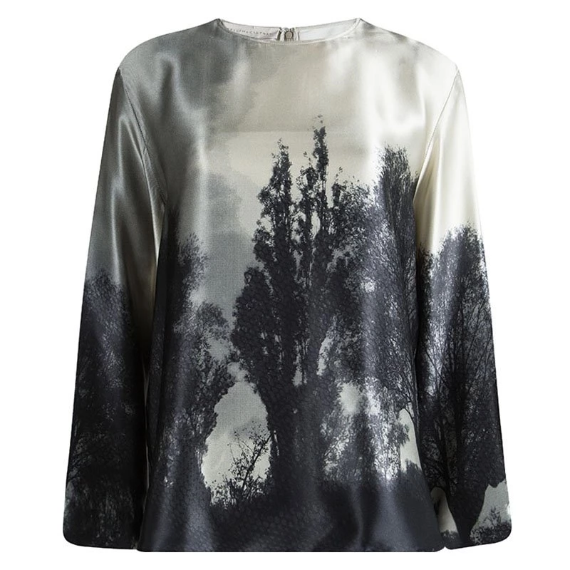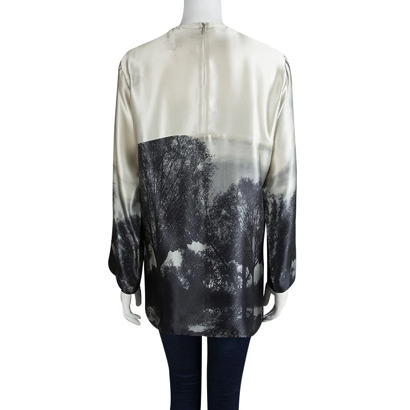 This graceful creation from Stella McCartney is perfect to wear for formal meetings. Crafted from the finest quality silk, the top has a closed round neck and is full-sleeved. It has a cream base with a subtle print in black, and has a glossy finish.