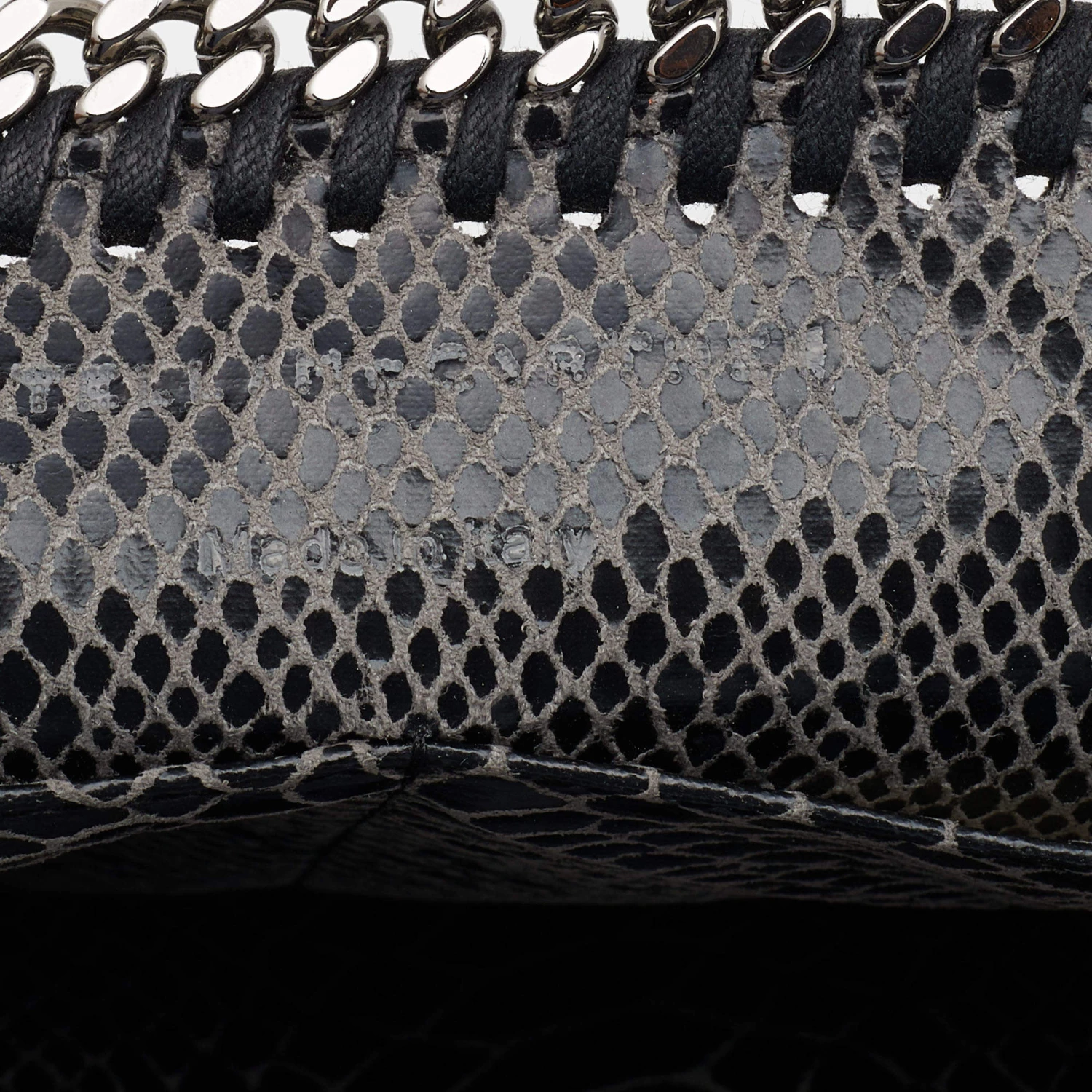 Just carrying this Falabella clutch from Stella McCartney will elevate your attire! Fitted to carry minimal party essentials, this clutch has a rectangular silhouette, which is crafted from grey python-embossed leather. It is embellished with gunmetal-tone hardware and opens to a nylon-lined interior.