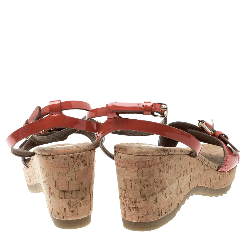 Stella McCartney is known for her chic designs and this pair of Linda wedges perfectly embodies this trait. Crafted from red faux leather, these cork wedge sandals feature open toes, buckle ankle straps and gold-tone buckle detailing on the vamps.