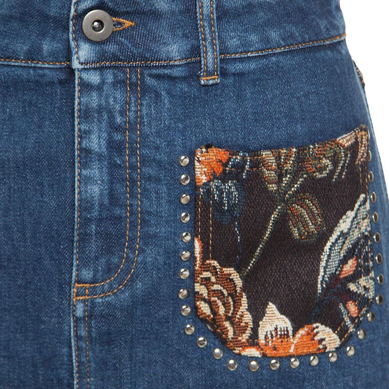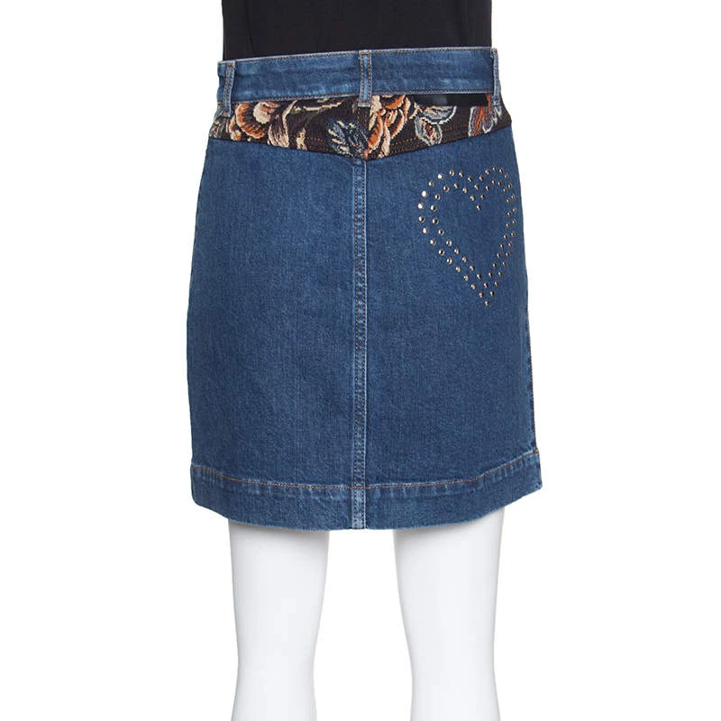 Walk with confidence in this gorgeous denim skirt from Stella McCartney. Made from quality cotton, the lovely skirt flaunts stud embellishments and floral jacquard trims. Chic and very modern, it can be paired well with a simple top and wedges or sneakers.