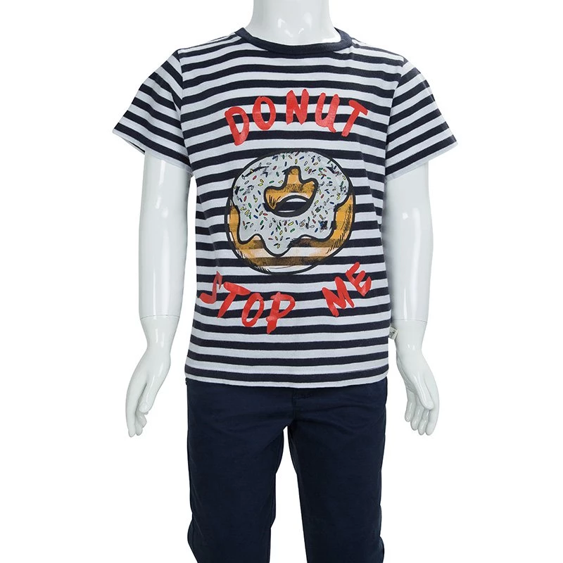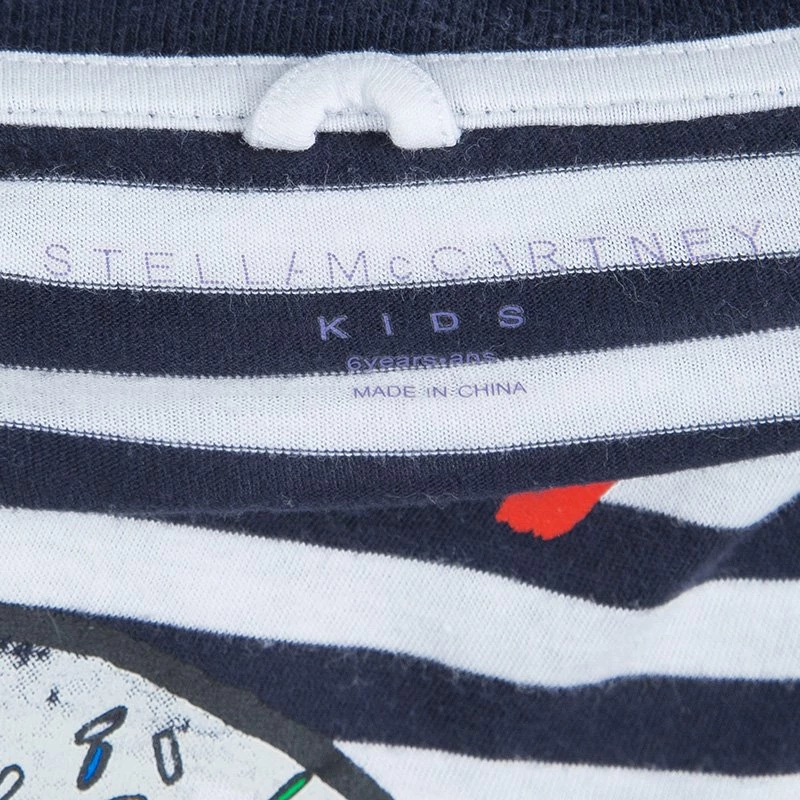 Popular for endearing designs for children, Stella McCartney offers this striped T-shirt for casual wear. It has a crew neck and made from soft jersey for comfort. Quirky print designed to appeal to children is set against a youthful striped pattern.