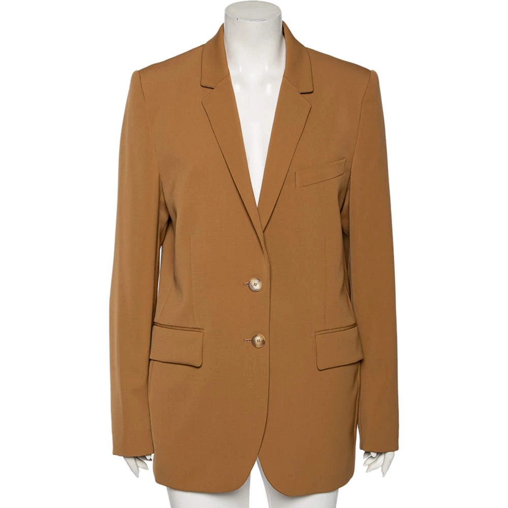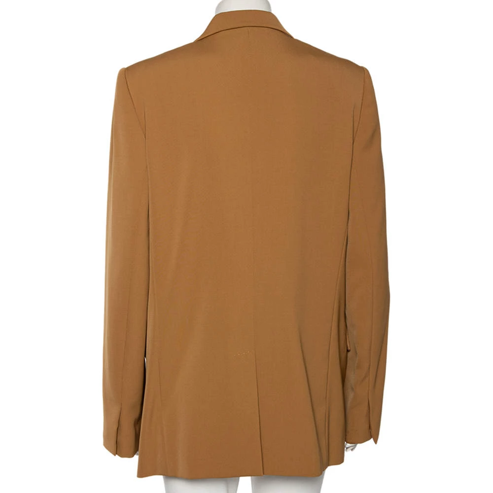 From Stella McCartney, this blazer is a stunning creation that will elevate your style. It is tailored using light brown wool and presents a single-breasted style. It has three pockets, butoned closure, and long sleeves. Exude sophistication and charm as you style this blazer.