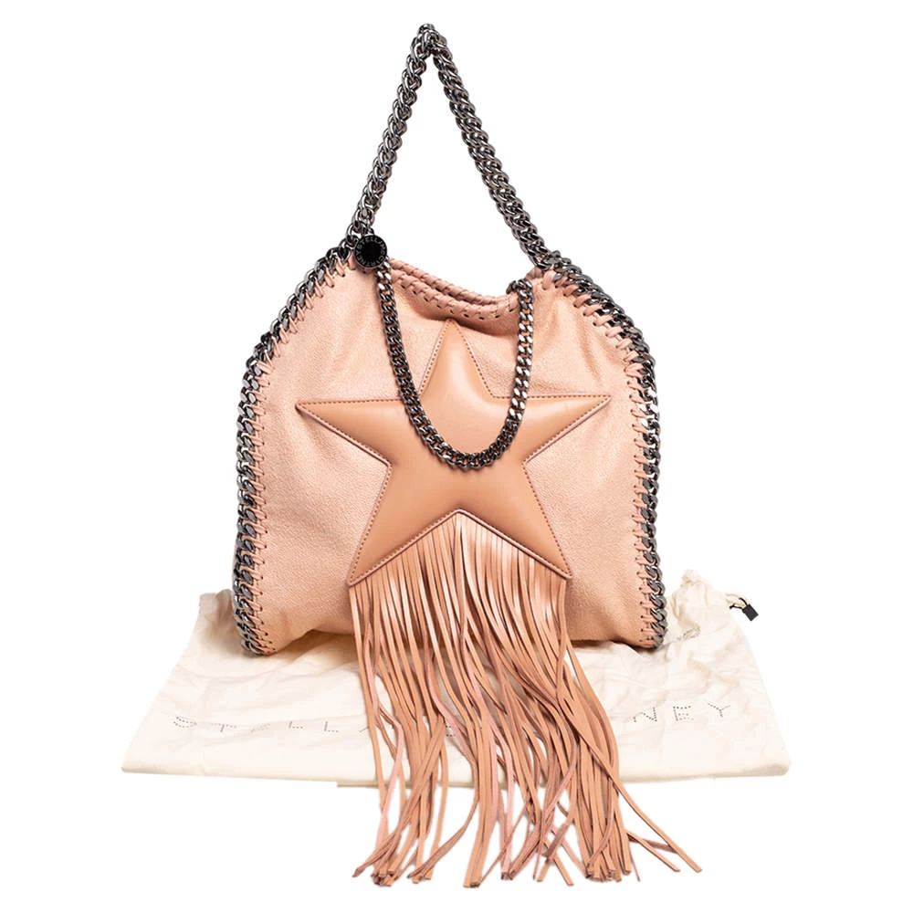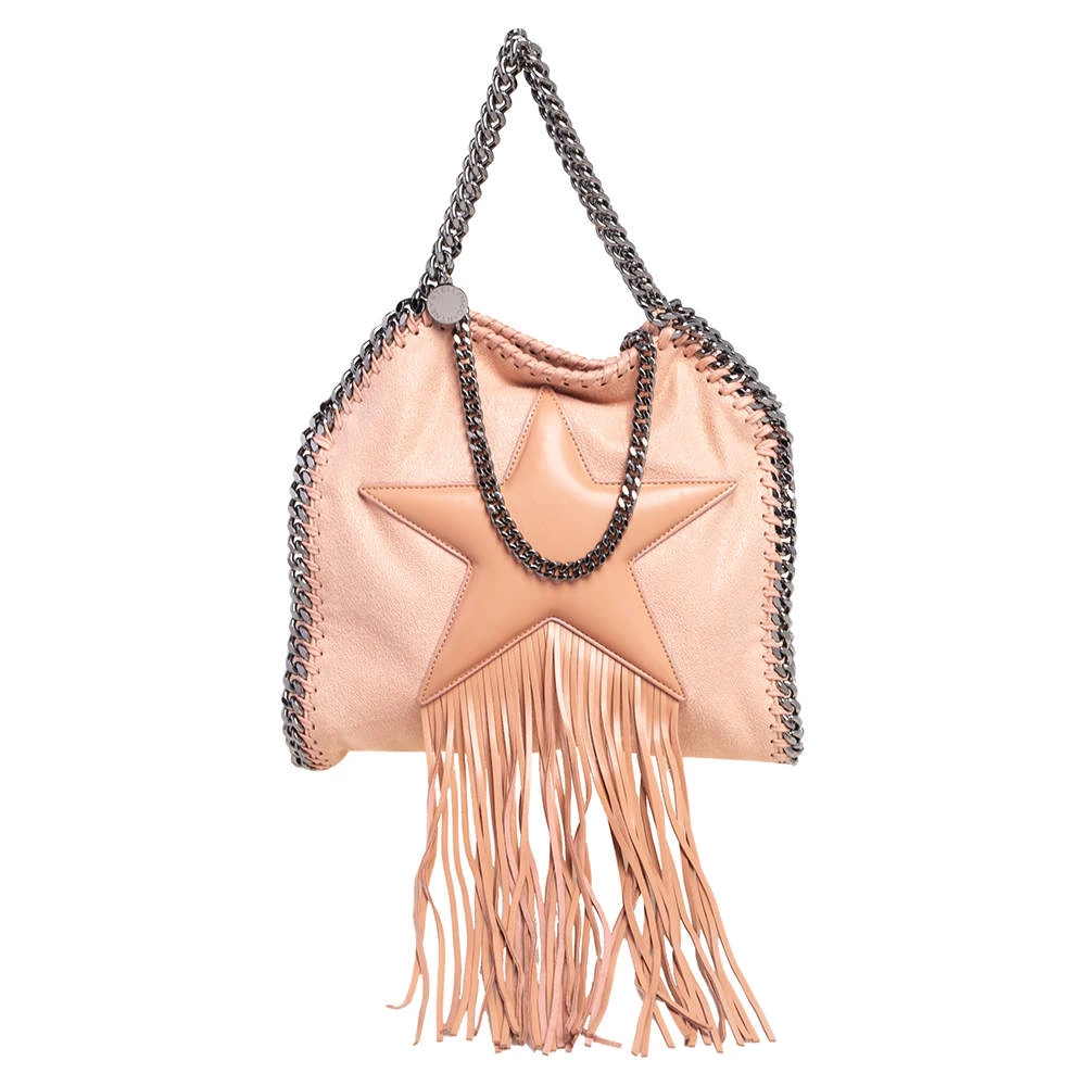 Stella McCartney Light Peach Faux Suede Falabella Star Fringed Shoulder Bag For Women