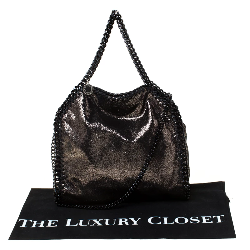 Stella McCartney Metallic Black Faux Leather Falabella Crossbody Bag For Women
