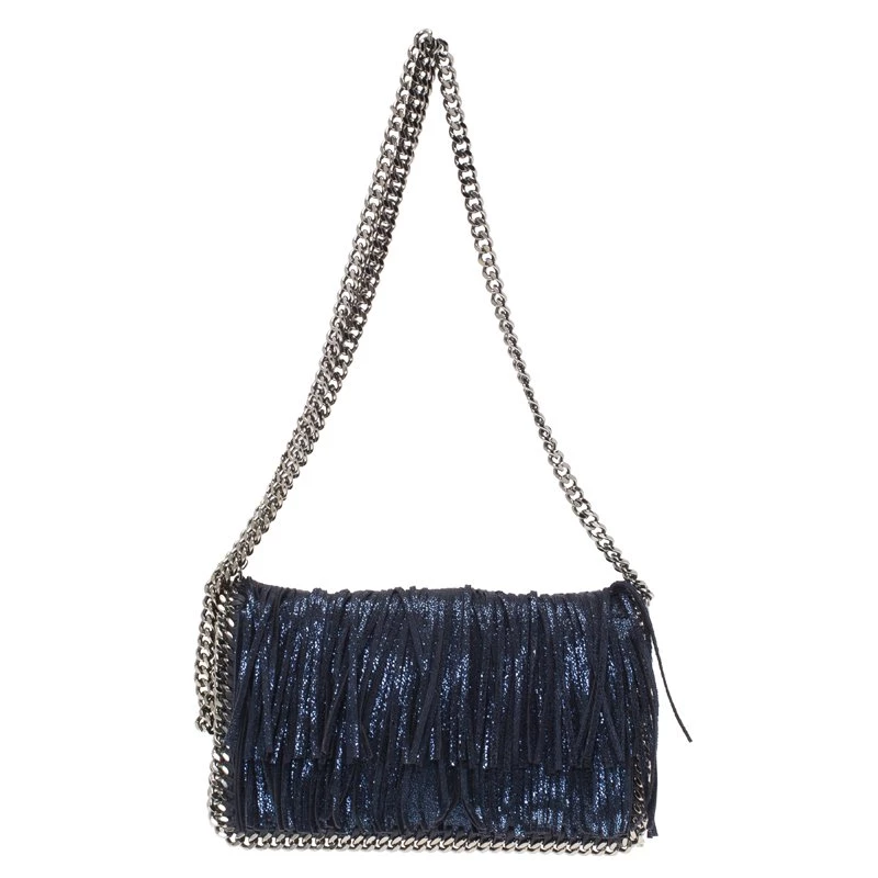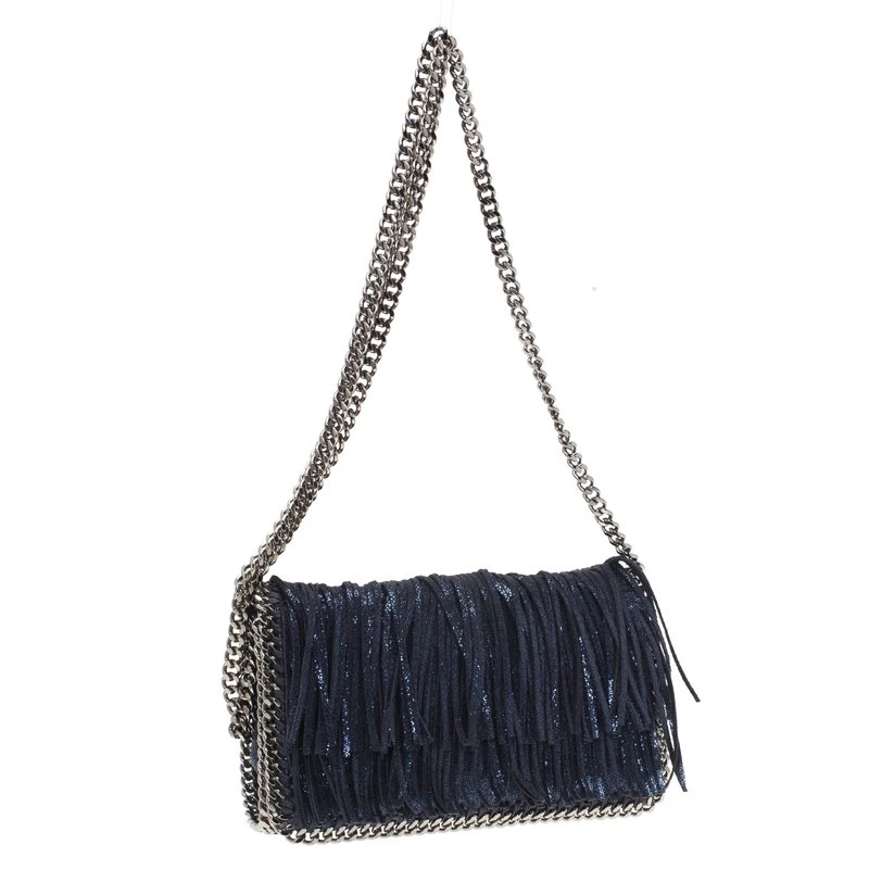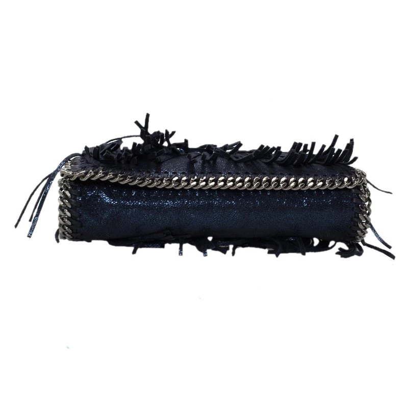 With chain- trimmed edges and beautiful soft blue faux leather, this is the style- and materials- that Stella McCartney is famous for. Silver-toned hardware, fabric lined interior, and a concealed magnet close finish this bag perfectly.