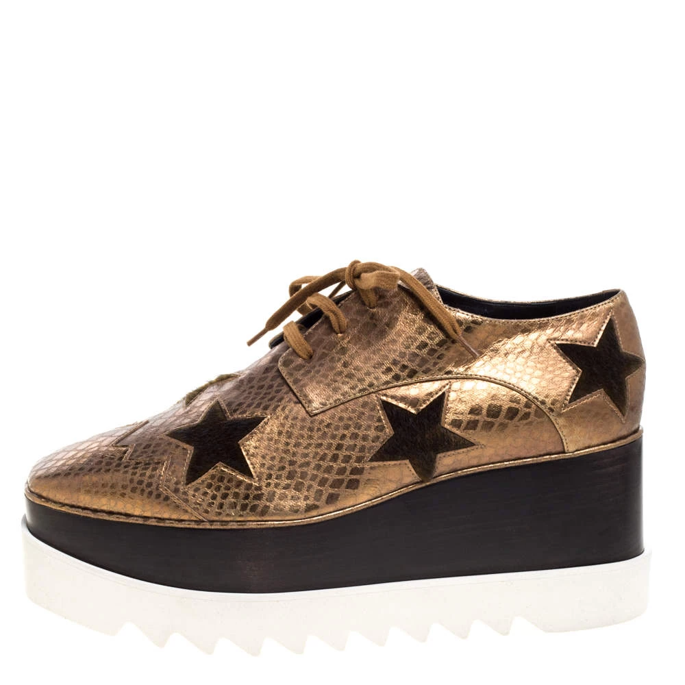 Stella McCartney exudes her high style and unique fashion taste with these Elyse sneakers. They are brimming with exquisite details like the stars on the embossed faux leather exterior, the laces, and the thick platforms. Grab this pair today and let it help you express your fabulous style.