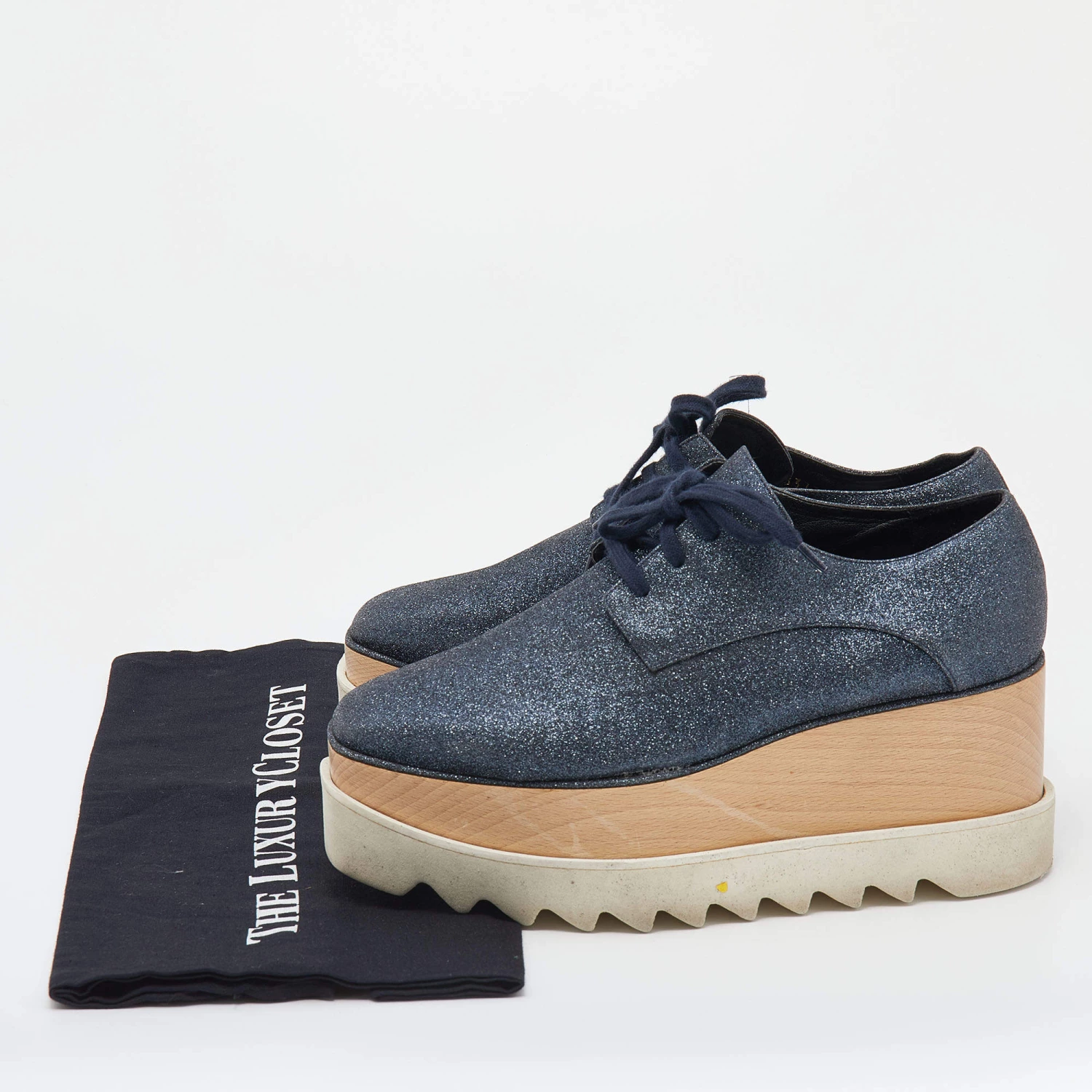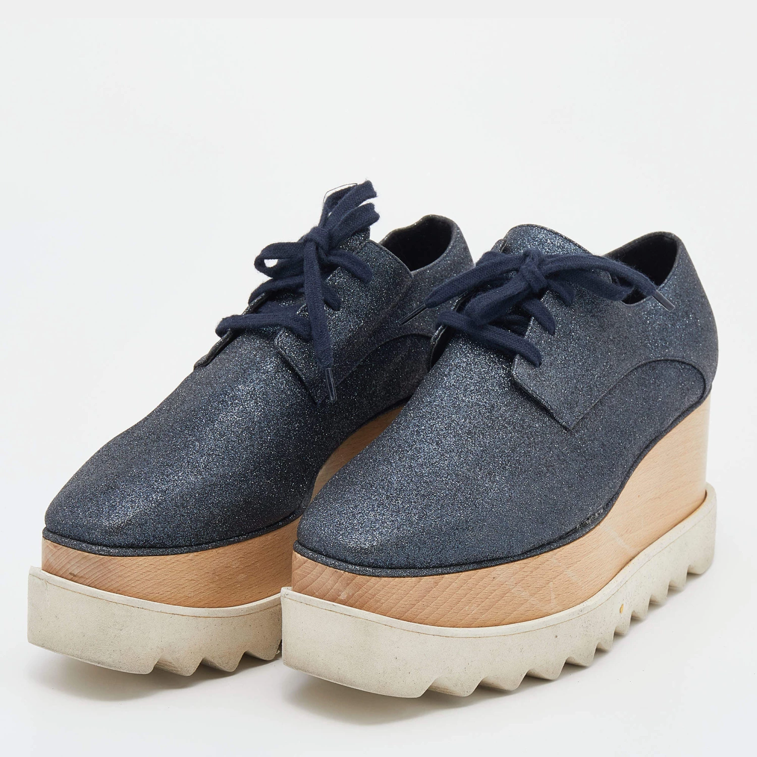 Stella McCartney Metallic Glitter Elyse Platform Derby Sneakers Size 38 For Women