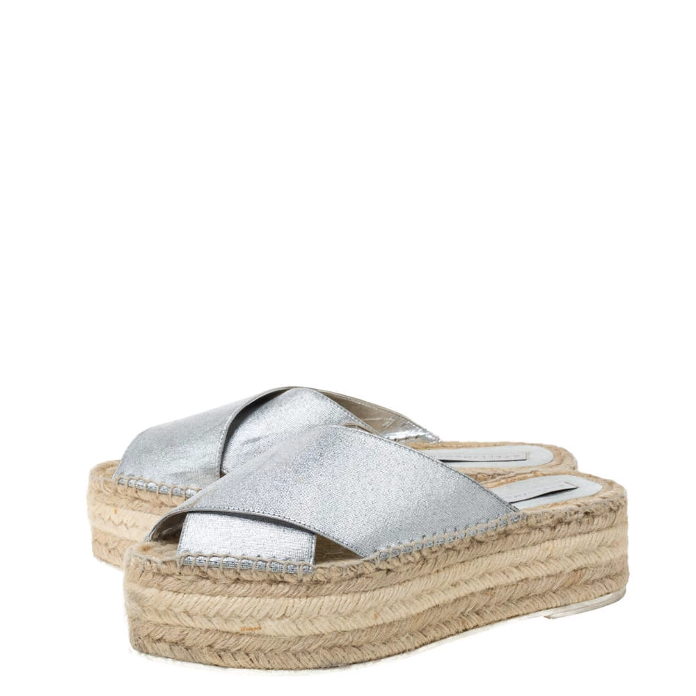 Espadrille flats never looked so stylish, thanks to these ones from Stella McCartney. The metallic flats are crafted from glitter faux leather, styled with cross straps on the vamps, endowed with comfortable insoles, and elevated on 5 cm platforms. Perfect conversation starters, we say!