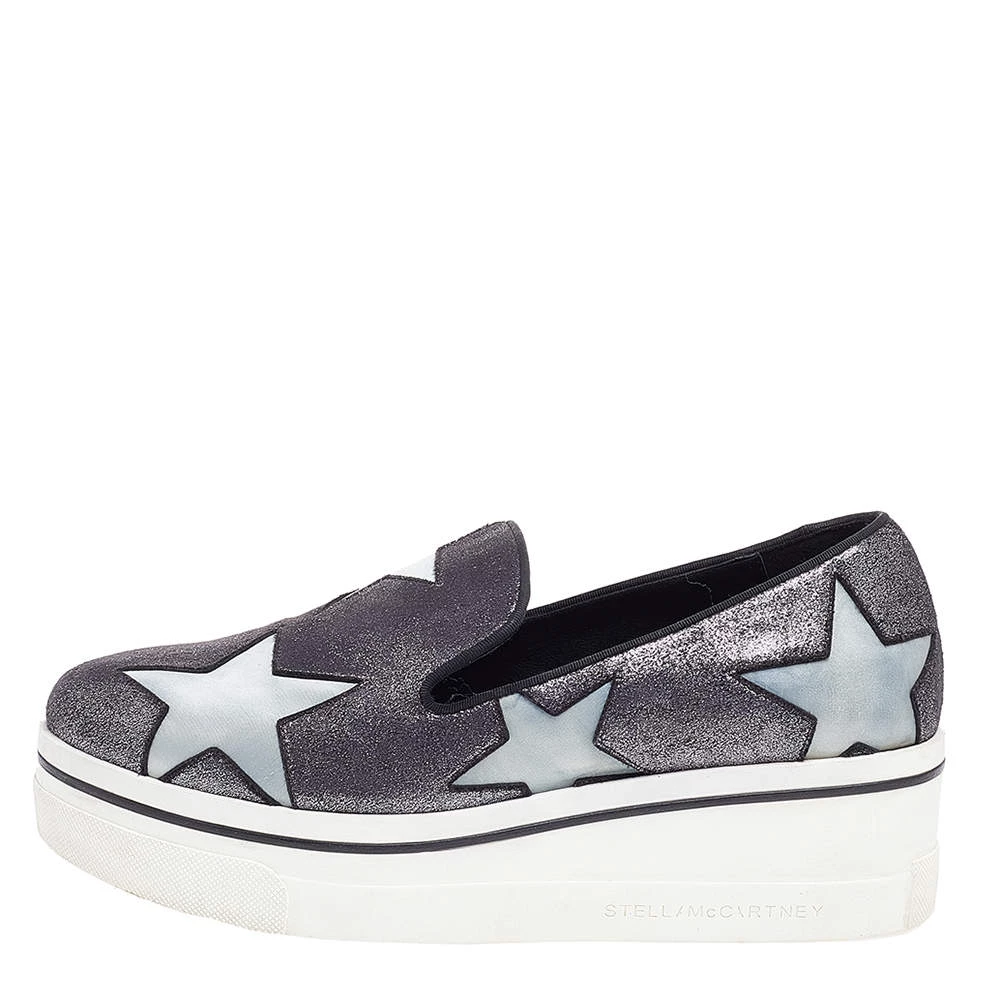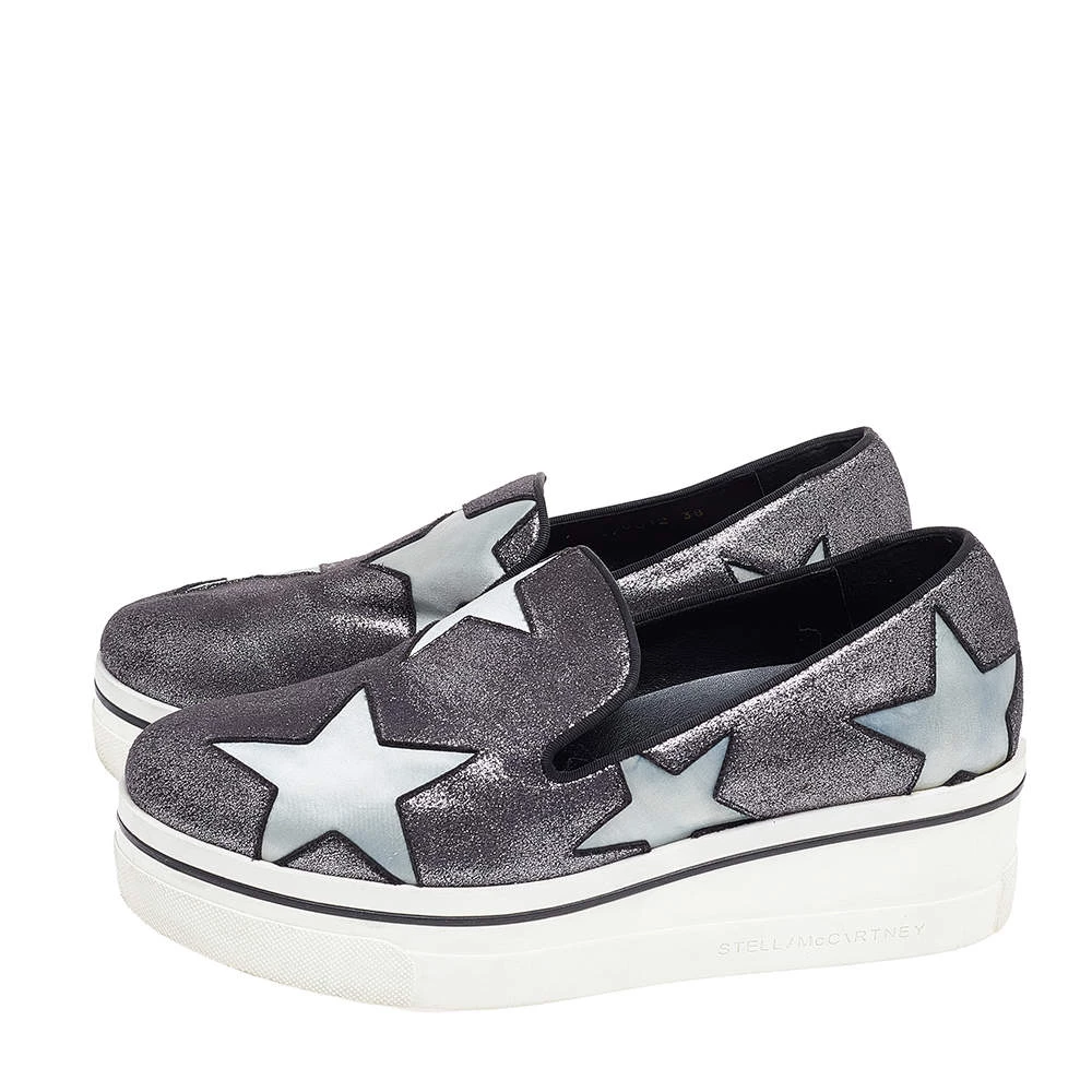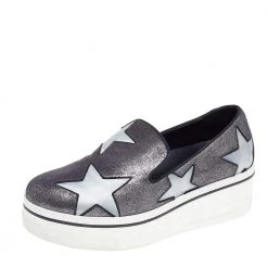 Taking inspiration from the ’90s fashion, these ‘Binx Star’ slip-on sneakers from Stella McCartney are crafted in metallic grey faux-suede with contrasting star-shaped cut-outs. Made in Italy, this low-top pair features a chunky rubber platform sole to take you to new heights.