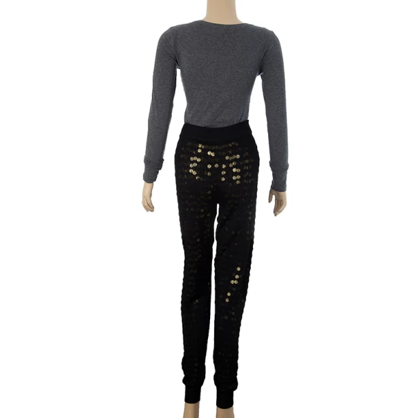 We’re loving these funky fresh pants by Stella McCartney! They feature metallic gold sequined embellishments and ribbed hems. These pants go perfectly with an oversized top or jumper.