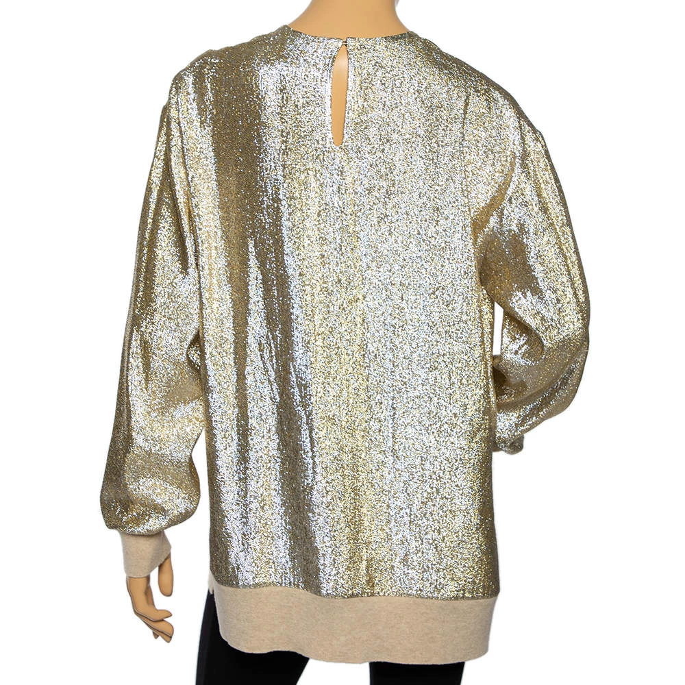 Stella McCartney blends glamour and comfort into wardrobe staples, presenting a line of wearable yet striking silhouettes for the fashionable contemporary woman. The top showcases a metallic hue throughout and is finished with long sleeves.