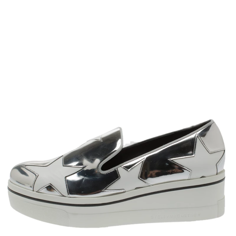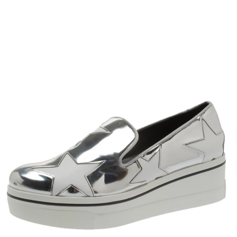 These Binx Star sneakers from Stella McCartney are effortlessly chic and stylish! The metallic silver sneakers have been crafted from faux leather and styled with round toes and star-shaped cutout details all over. They come equipped with comfortable insoles and are elevated on rubber platforms.