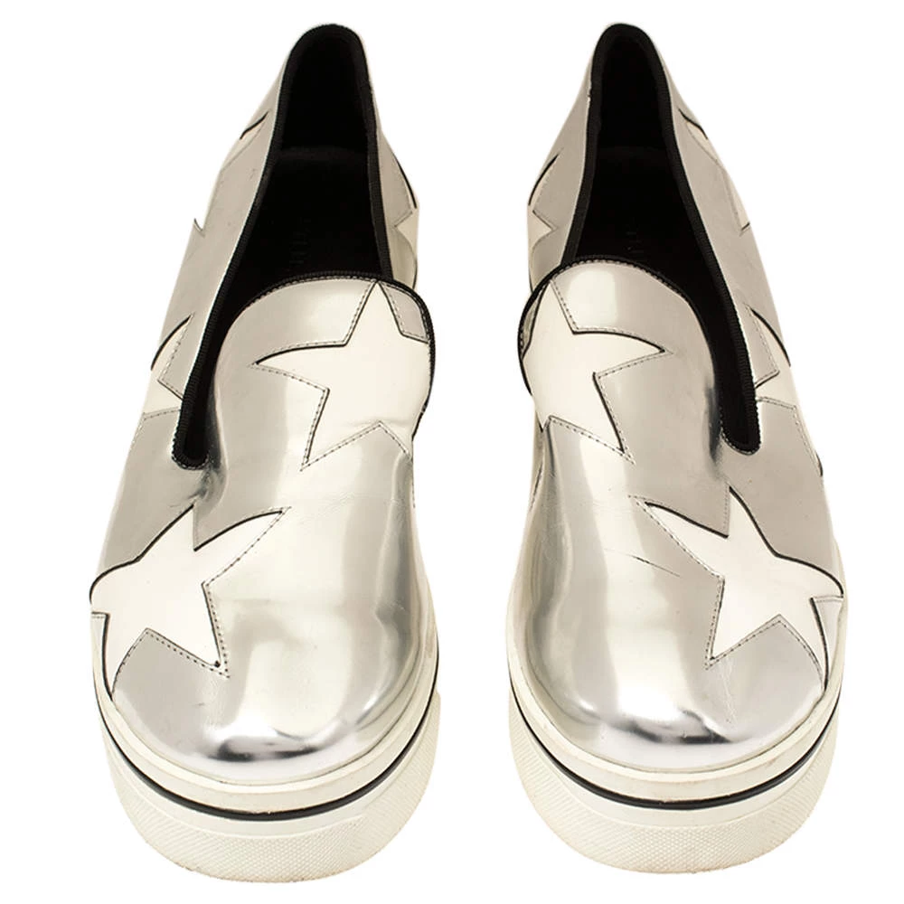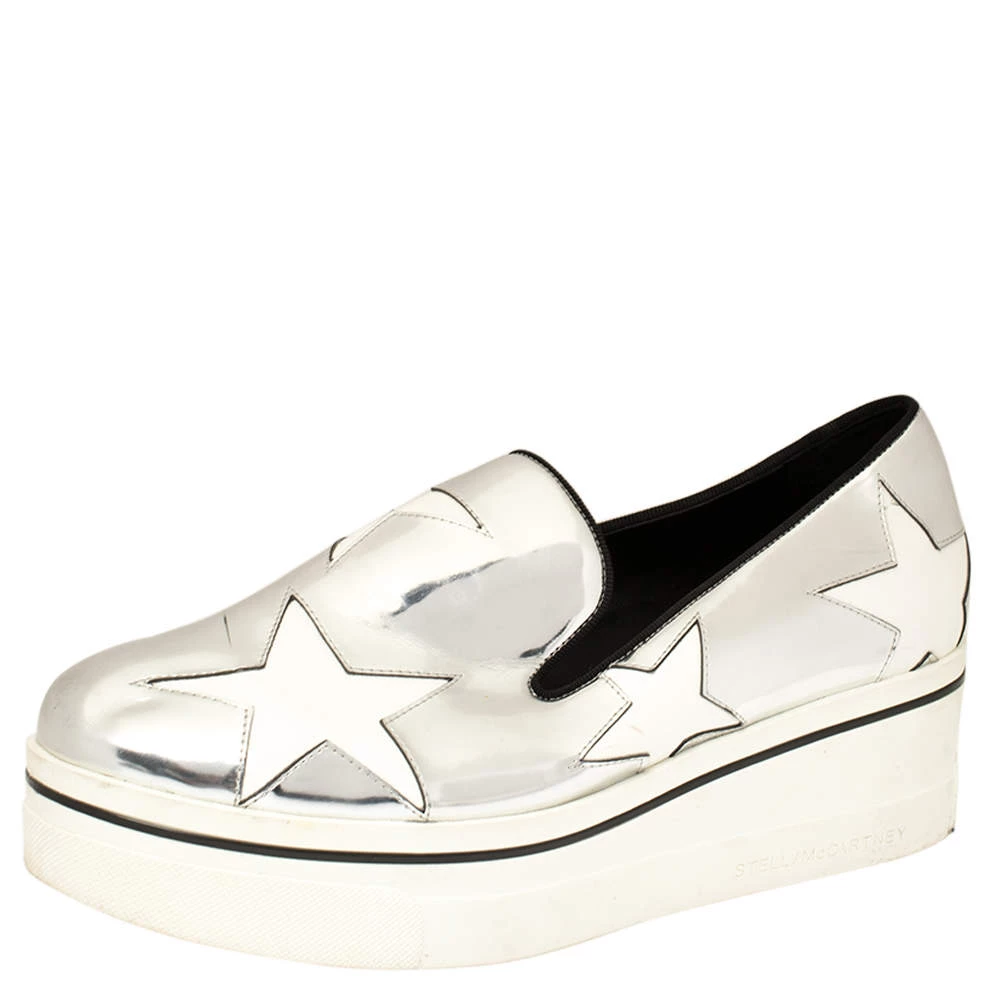 These Binx sneakers from Stella McCartney are effortlessly chic and stylish. The metallic silver sneakers have been crafted from faux leather and styled with round toes and star-shaped cut-outs all over. They come equipped with comfortable faux leather insoles and rubber platforms.