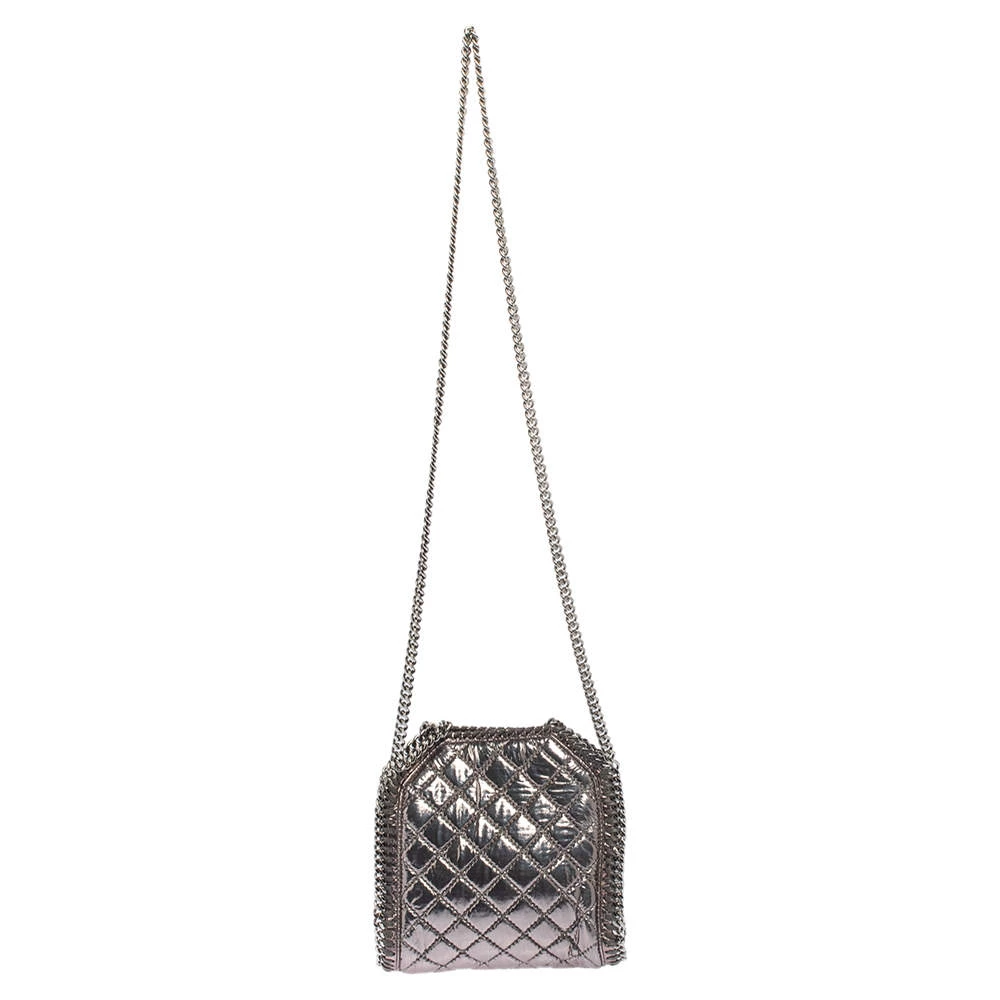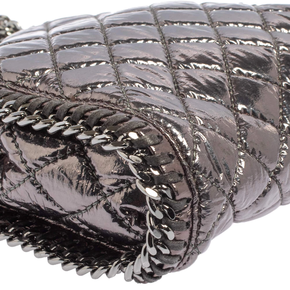 This Falabella bag from Stella McCartney will make the dream of countless women come true. Crafted from faux patent leather, it is durable and stylish. While the chain detailing elevate its beauty, the fabric-lined interior will dutifully hold all your daily essentials. You are sure to make hearts skip when you swing this metallic silver bag using the chain handles.