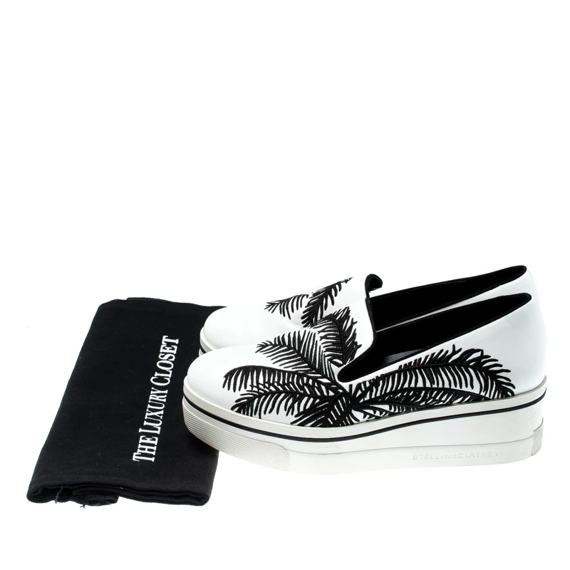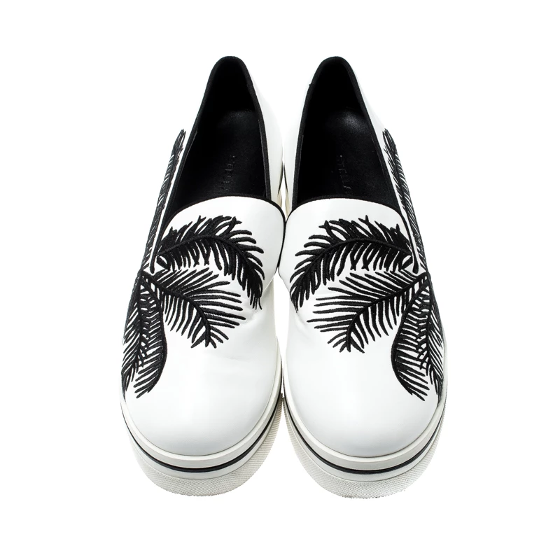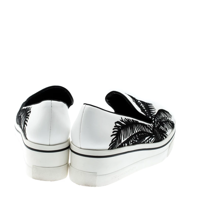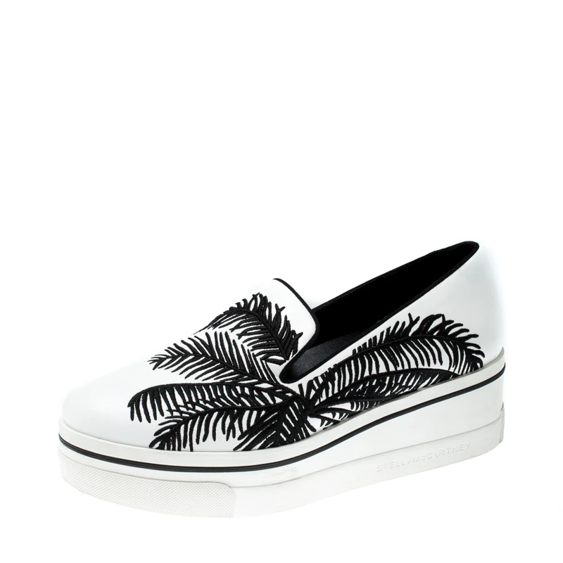 To accompany your attires with ease, Stella McCartney brings you this pair of sneakers that speak nothing but high style. They’ve been crafted from faux leather and designed with embroidery of palm trees. The comfortable sneakers are easy to slip on and they are elevated on platforms.
