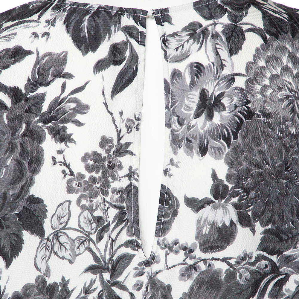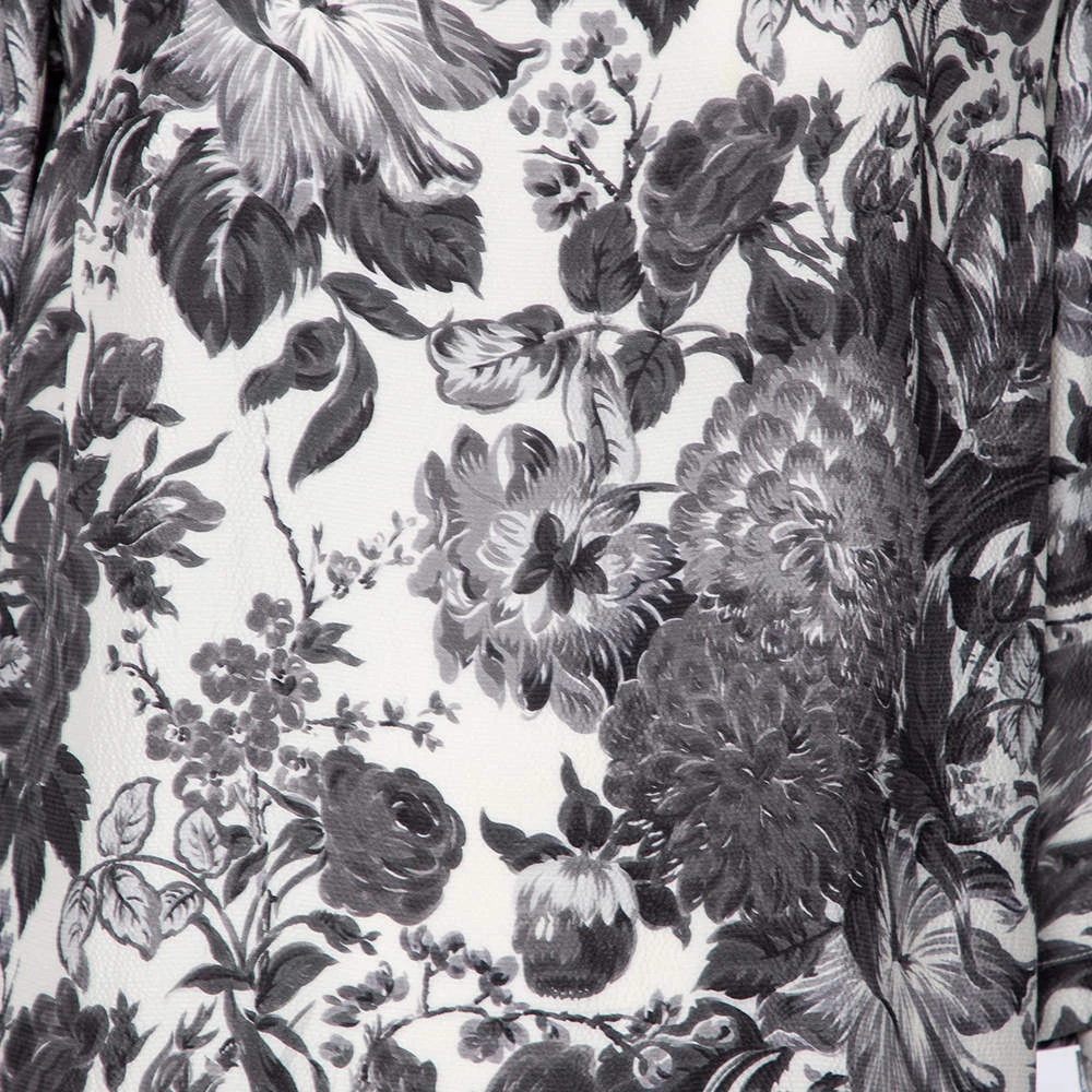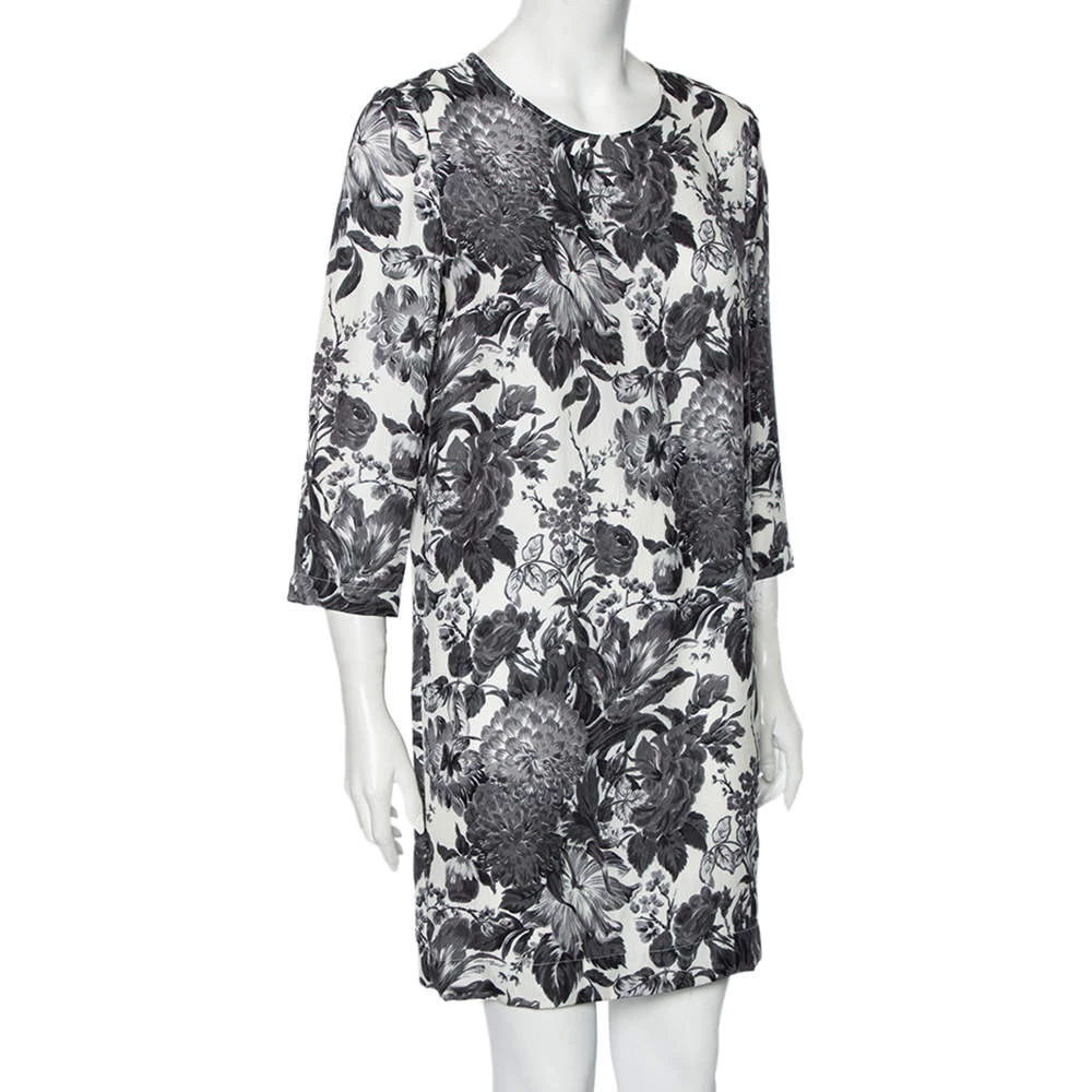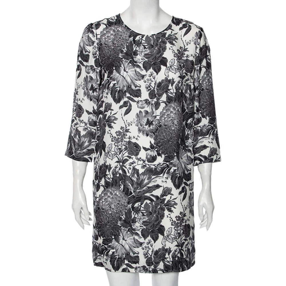 This Stella McCartney dress is every bit stylish and in trend. Look marvelous in this posh grey outfit as you go out and about town. This floral printed silk ensemble features a short length, a monochromatic palette and a simple neckline.