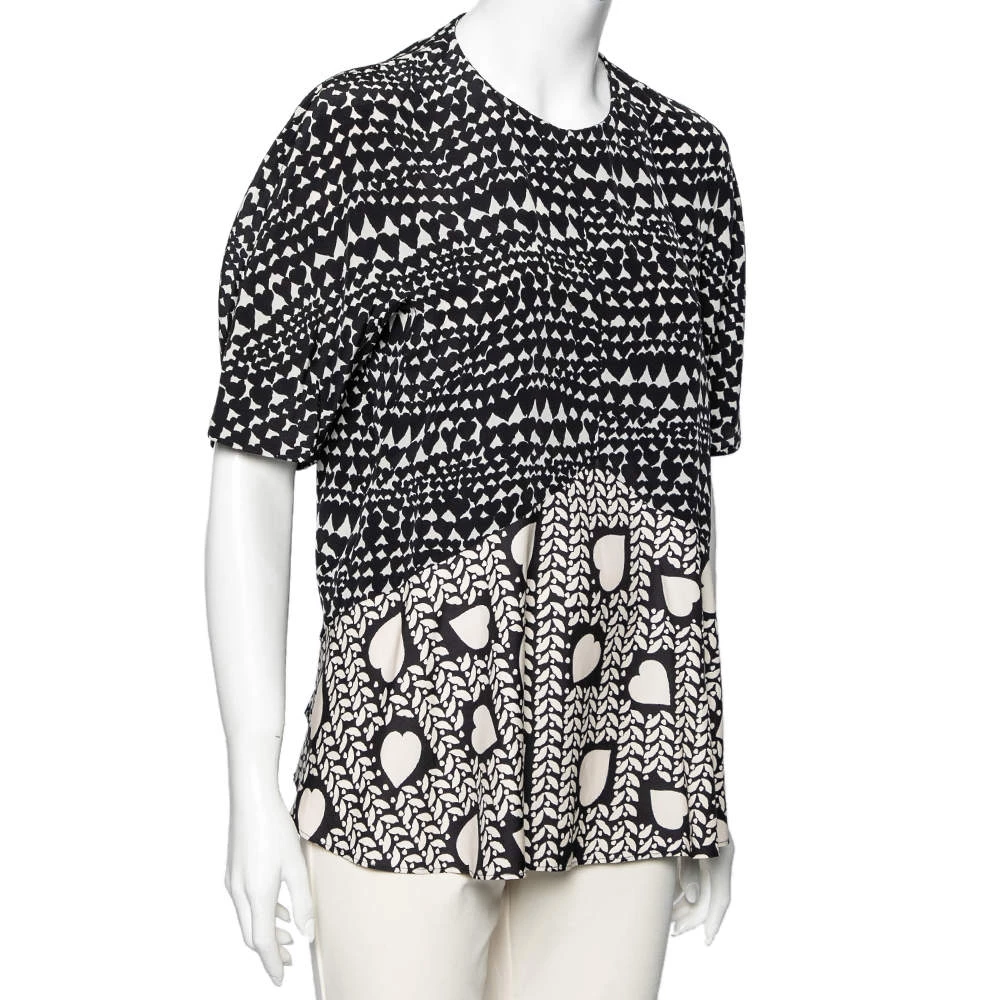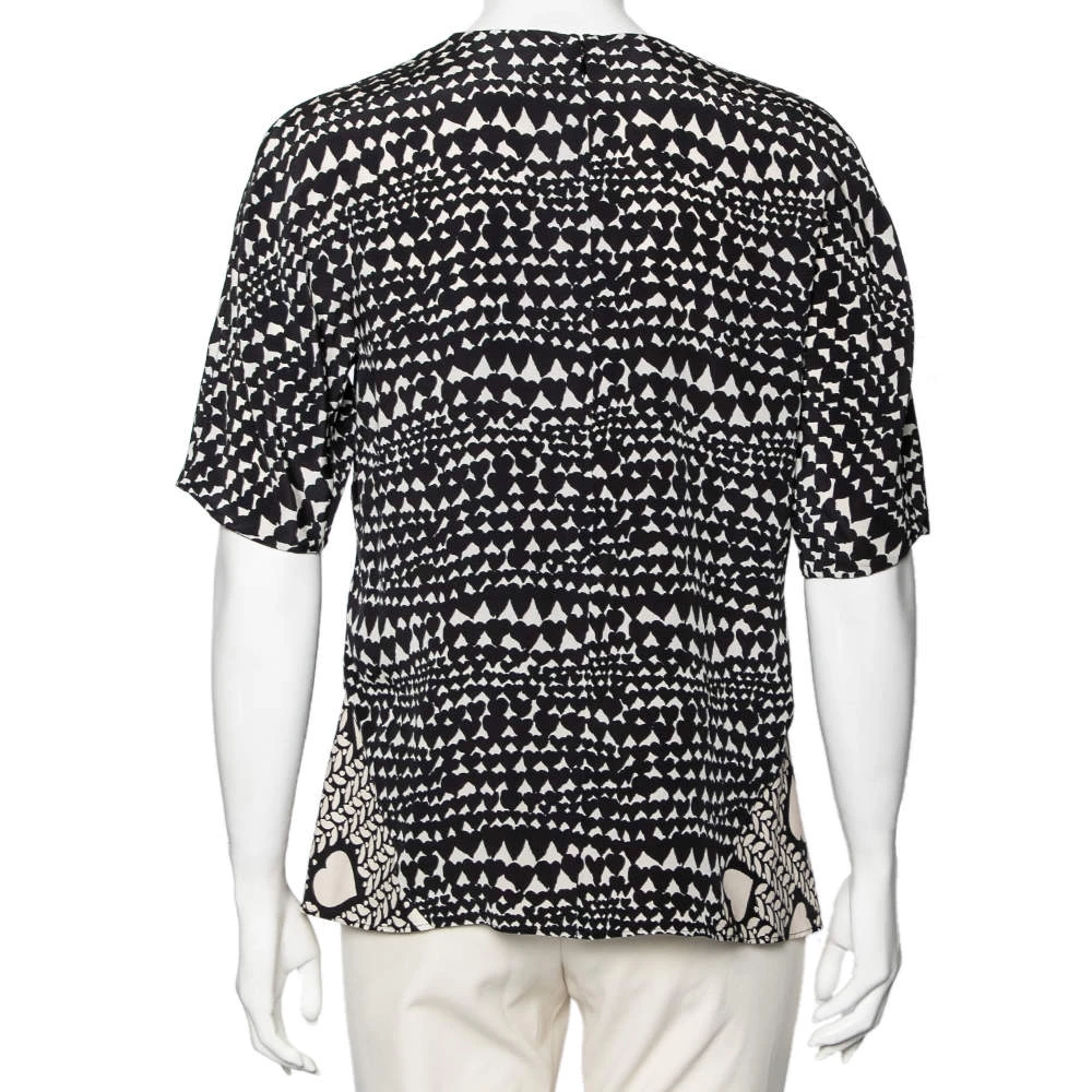 Make an elegant and chic style statement wearing this flounce top from Stella McCartney. The monochrome piece looks utterly fashionable with its unique heart print. Pair the silk top with trousers and flats for that effortless appeal.