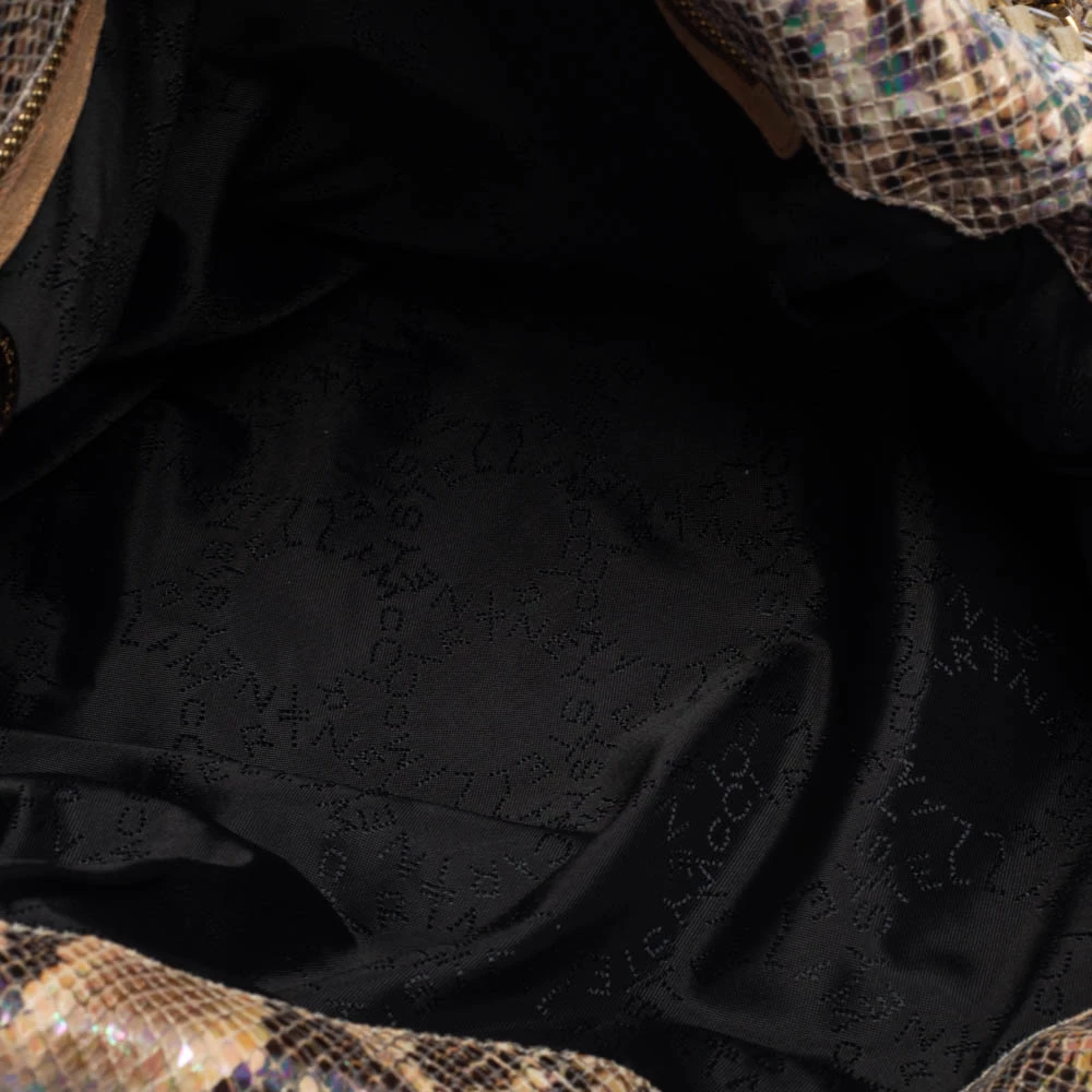 This Falabella tote from Stella McCartney will make the dream of countless women come true. Crafted from faux python-embossed leather, it is durable and stylish. While the chain detailing elevate its beauty, the fabric-lined interior will dutifully hold all your daily essentials. You are sure to make hearts skip when you swing this tote using the chain handles.