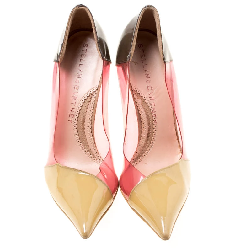 The trendy, stylish look is possible in this pair of faux leather and PVC pumps. They feature pointed toes and 9.5 cm heels with an ombre touch. Wear minimalist jewelry to let your great pair of multicolor pumps grab all the attention.