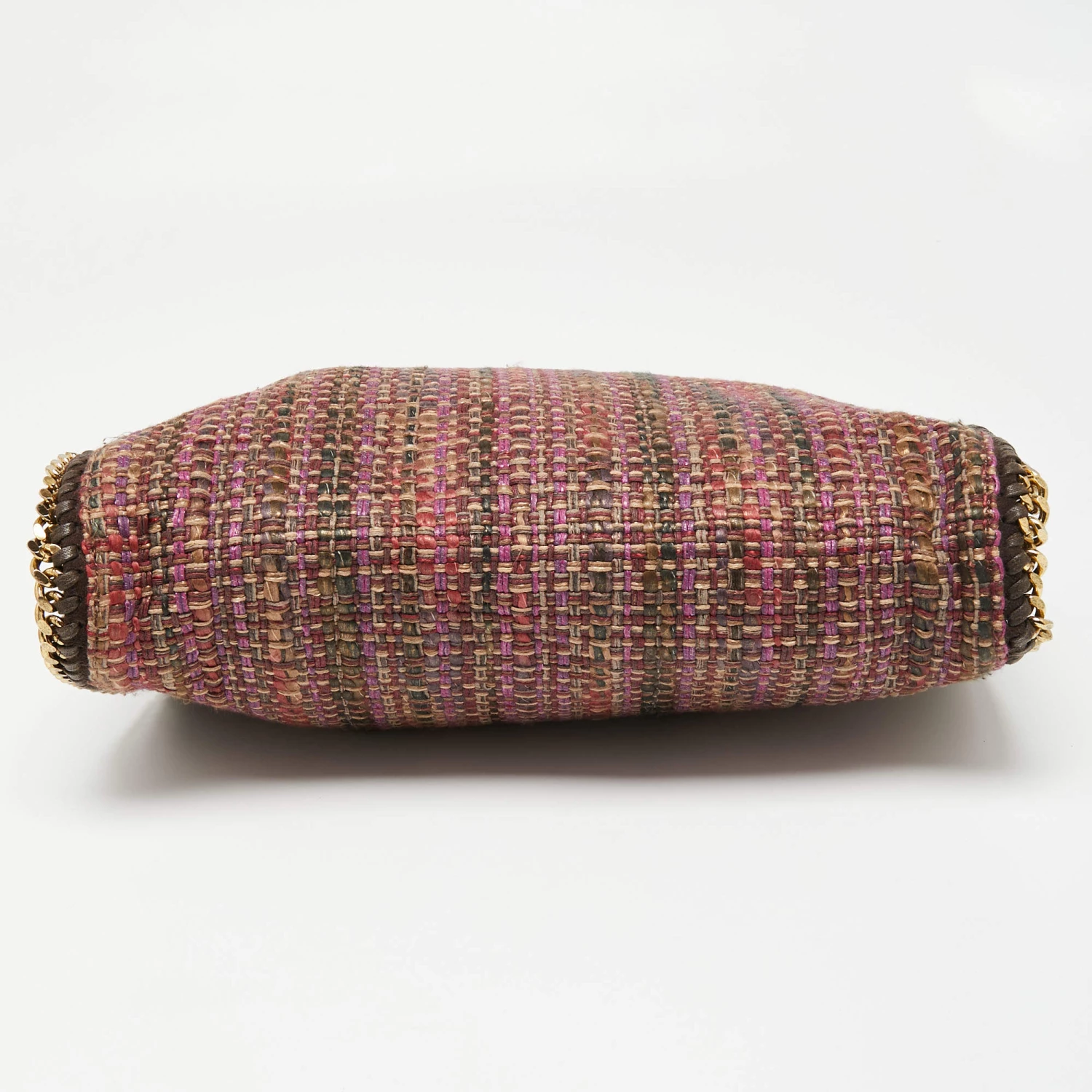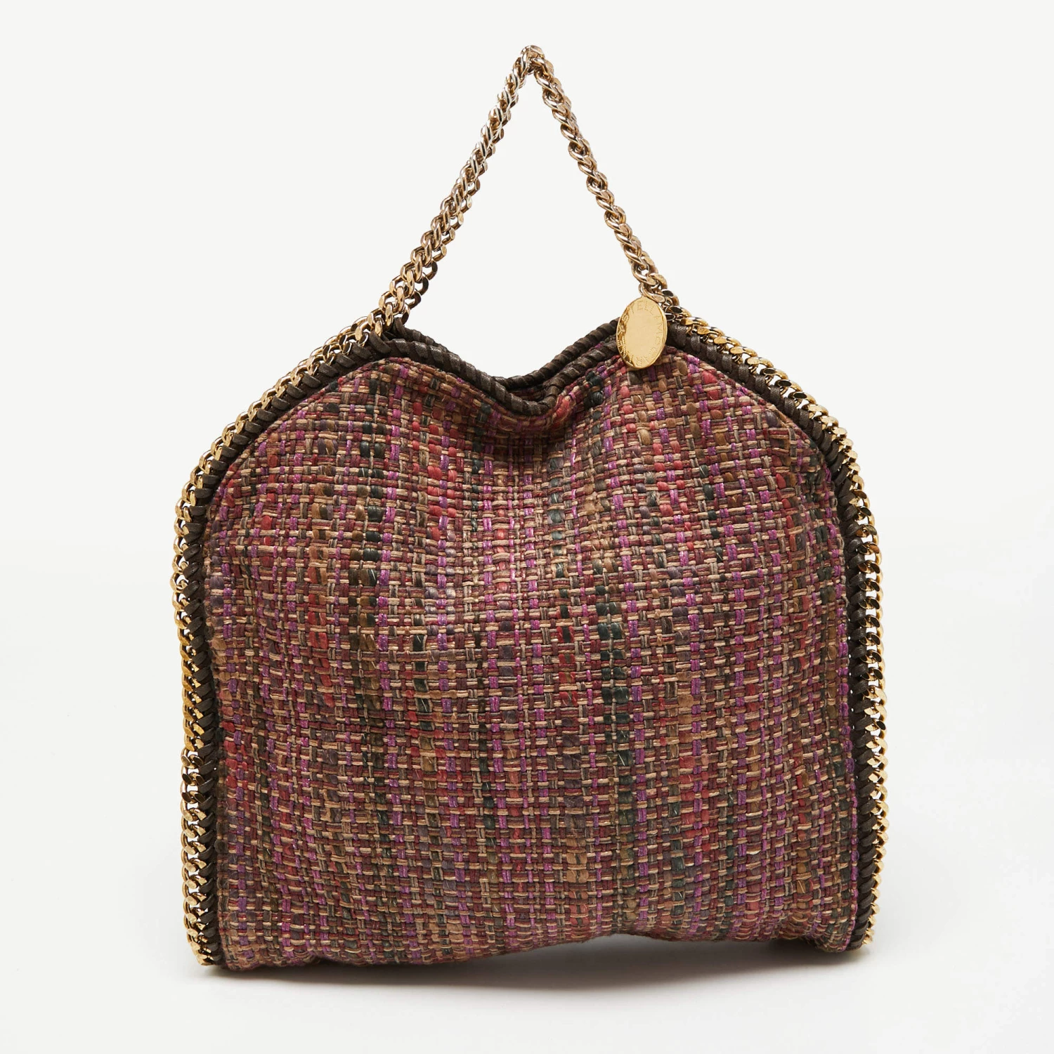 This Falabella tote from Stella McCartney is one of the most loved designs from the sustainably conscious label. Crafted from woven tweed, it is durable and stylish. While the chain detailing elevate its beauty, the fabric-lined interior will dutifully hold all your daily essentials. You can swing this tote using the chain handles.