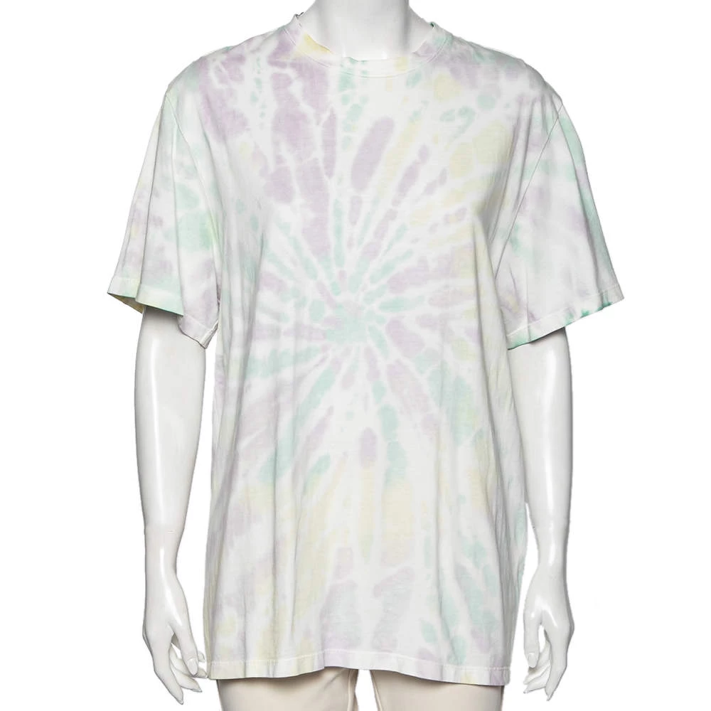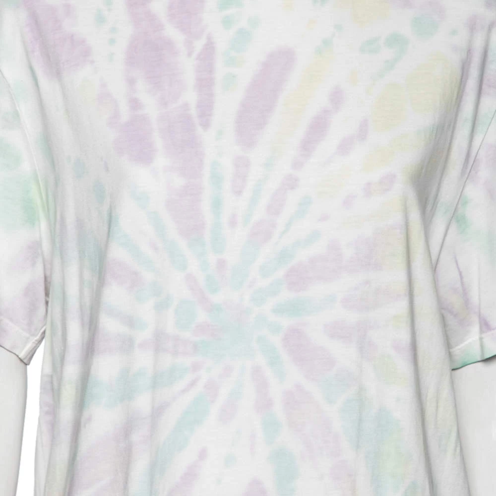 Make a trending style statement wearing this tie-dye printed T-shirt from Stella McCartney. The multicolored piece is sewn from cotton and features short sleeves. You can pair it best with denim shorts and low-top sneakers.