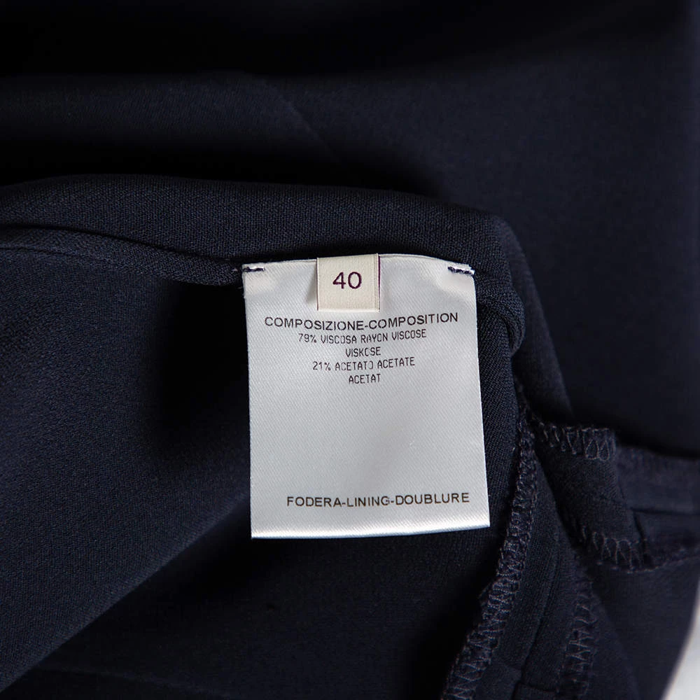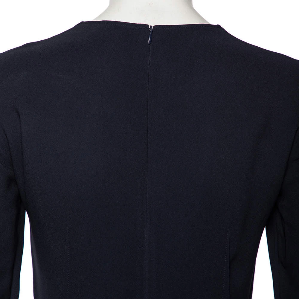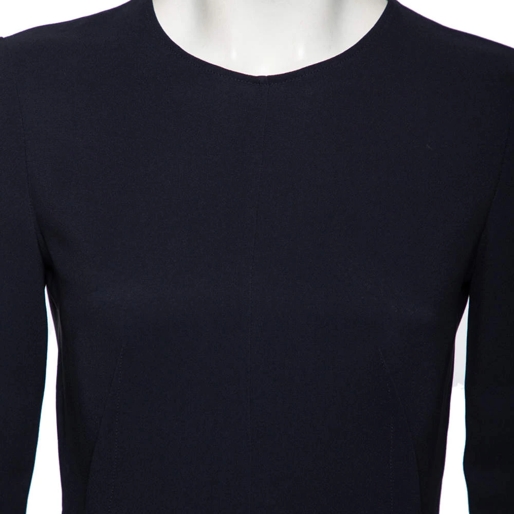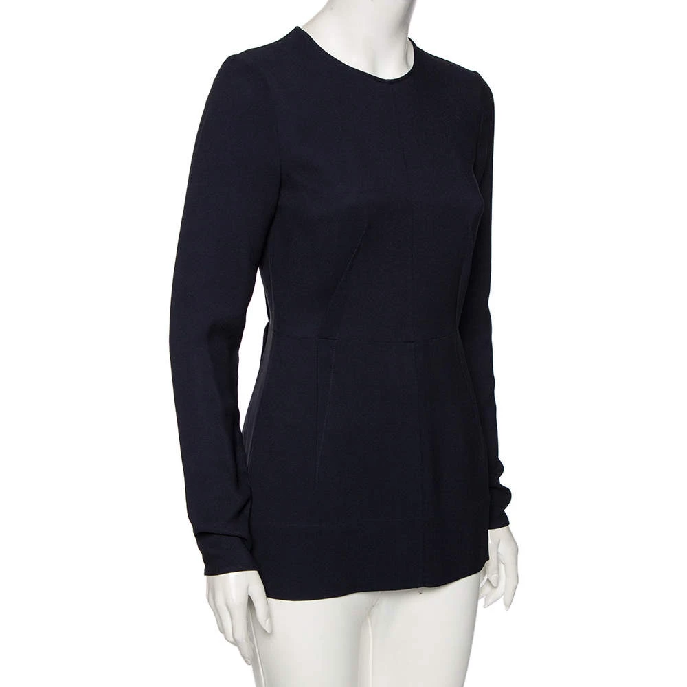 This top hails from the exclusive house of Stella McCartney. It has a simple style that can be elevated with accessories. The navy blue expanse has a peplum style, long sleeves and a round neckline.