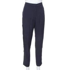 These trousers from Stella McCartney is a creation that you cannot let go of. They have been crafted from crepe fabric and features a navy blue shade all over. These trousers are styled with side slit details. They are great for casual occasions and will pair well with high heels.