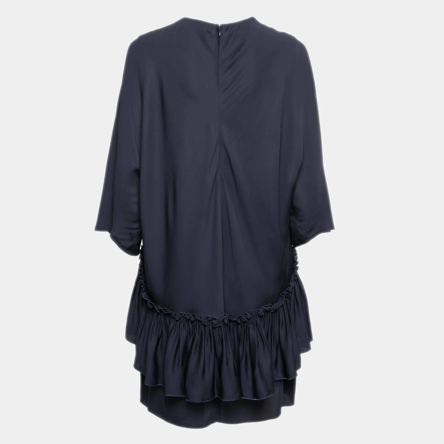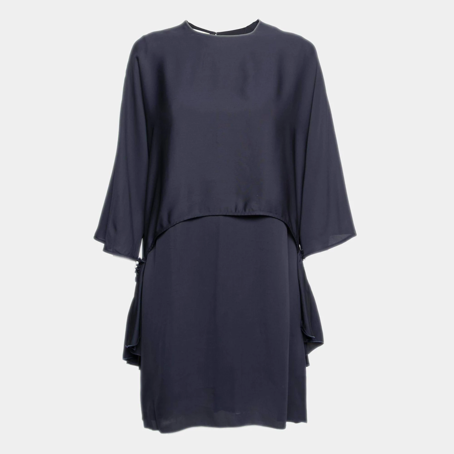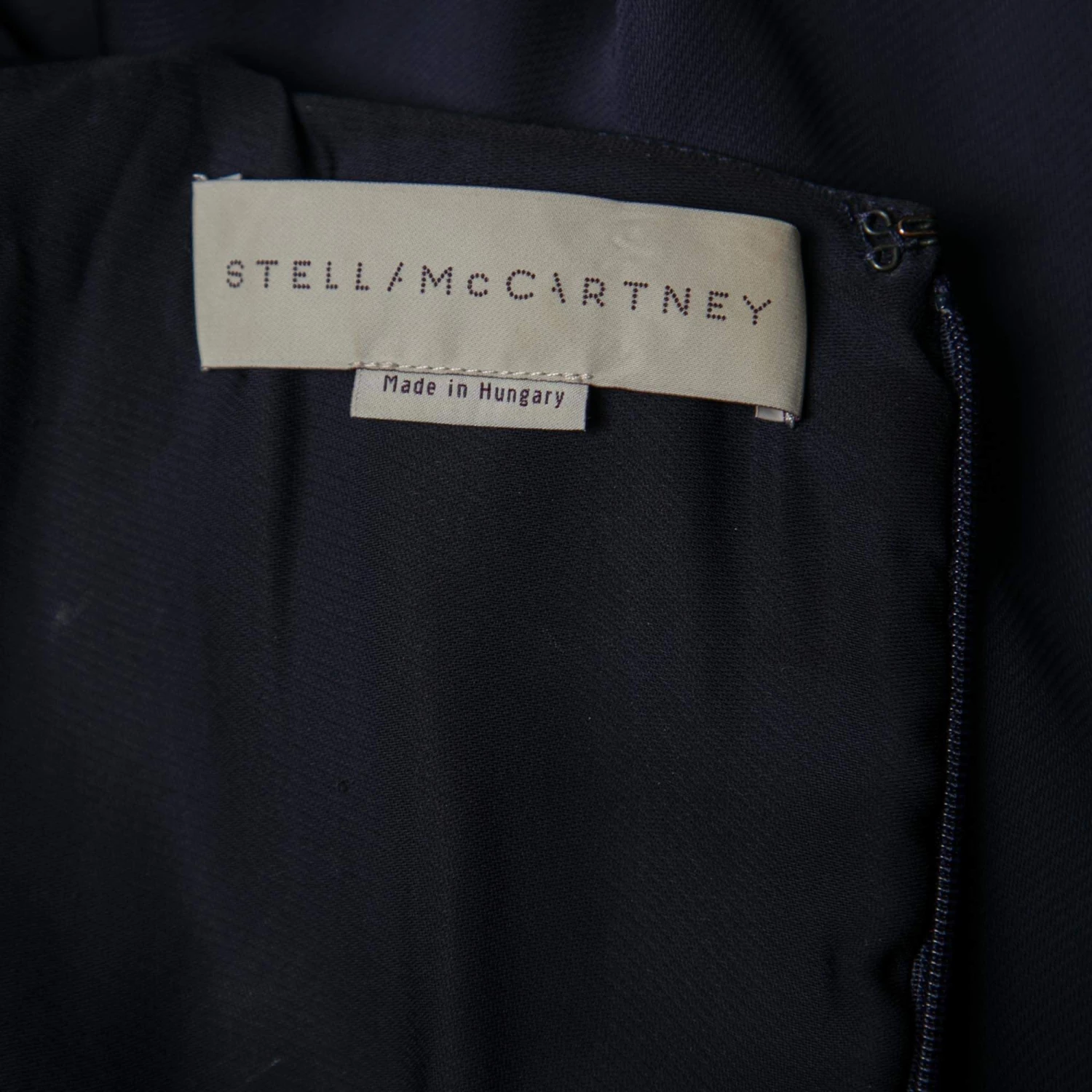 Make heads turn wearing this lovely dress designed by Stella McCartney. It flaunts a navy blue hue and has a tiered style that lends a beautiful, artistic touch to this feminine piece. The dress is finished off with a zip closure at the back.
