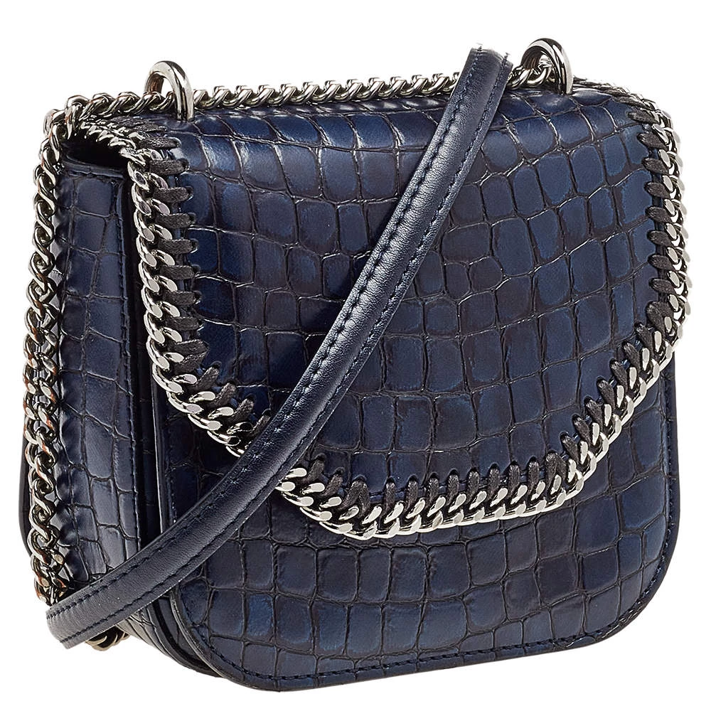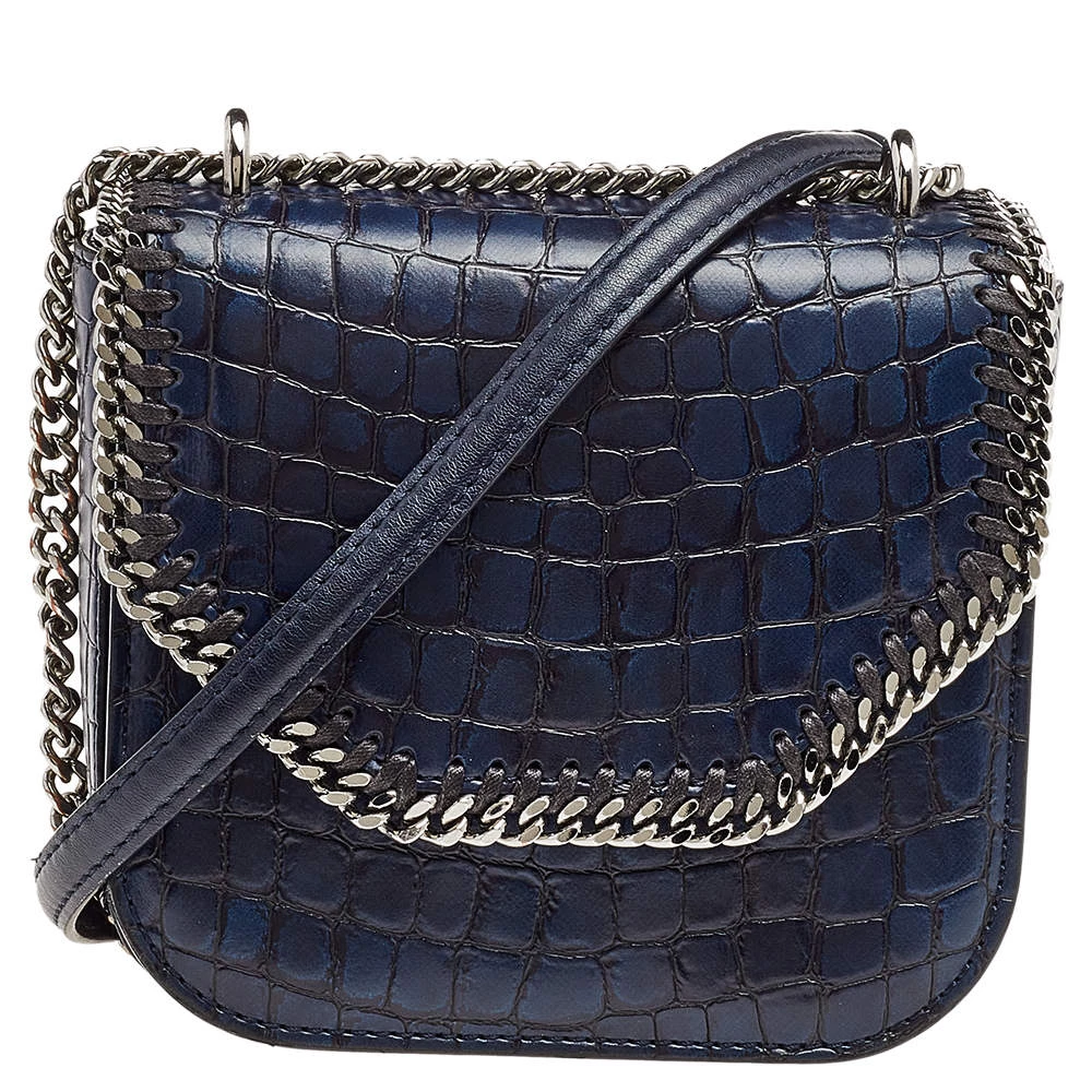 A refreshing version of your Falabella bags, this box shoulder bag is chic and elegant. Featuring a diamond-cut front flap detailed with chain-link trims, the croc-embossed faux leather bag has a blend of unique details and signature designs. It has a lined interior that will stow your essentials. This bag will give your wardrobe a fashionable update.