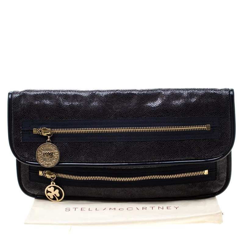 Stella McCartney Navy Blue Faux Leather Double Zip Clutch For Women