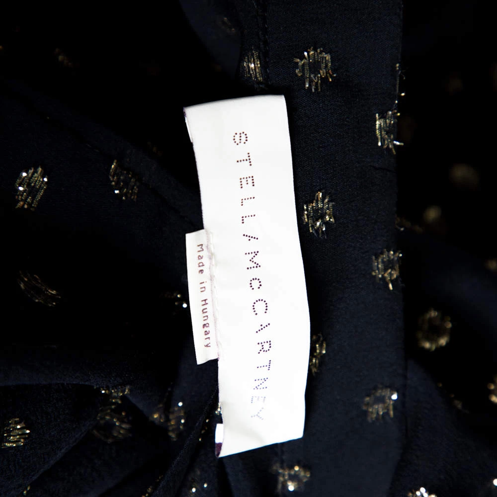 Dress up in this Stella McCartney dress and have everyone go ga-ga over your style. Look chic and confident look with this pretty navy blue, chiffon sheer dress. Made in the finest silk blend, this attire makes a statement of its own.