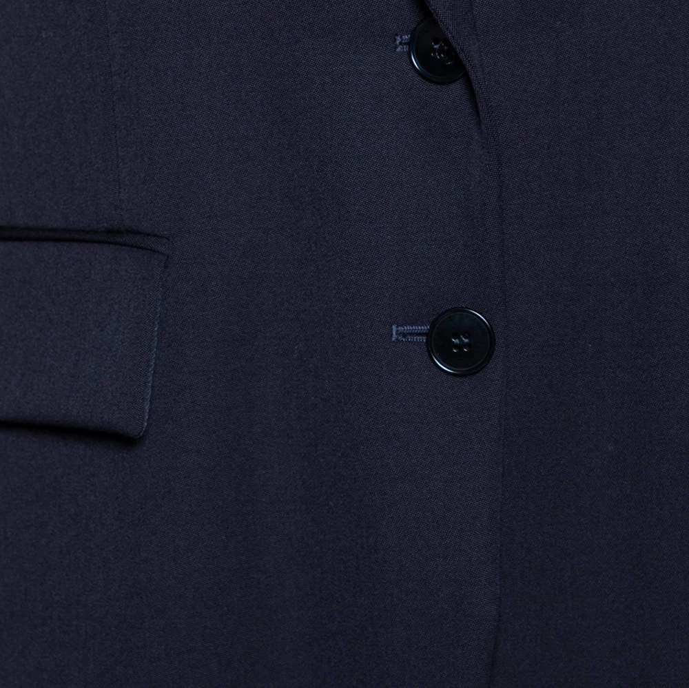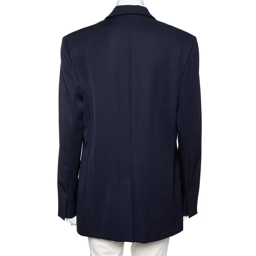 Make a powerful style statement in this Stella McCartney blazer that is crafted from wool. It features a navy blue hue, pockets, and front buttons. Pair the single-breasted blazer with matching trousers and a simple top.