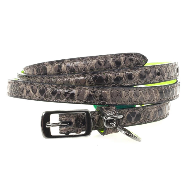 This Stella McCartney Neon Green Python Print Skinny Belt is both elegant and fun. This reversible belt features one chic faux python side and one ultra stylish green neon side. It closes with a buckle closure.Original Retail Price: US $290