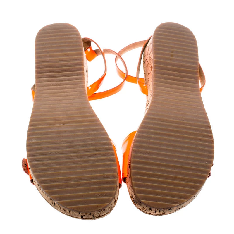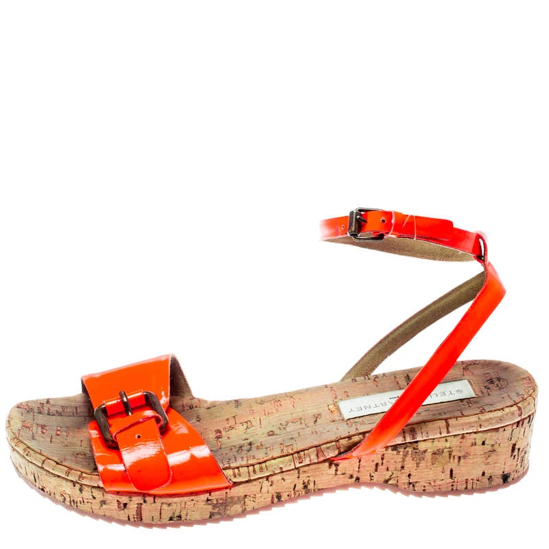 Stella McCartney is known for turning sustainable materials into chic designs such as this pair of Linda wedges. Crafted from neon orange faux leather, these cork wedge sandals feature open toes, buckle ankle straps and gold-tone buckle detailing on the vamps.