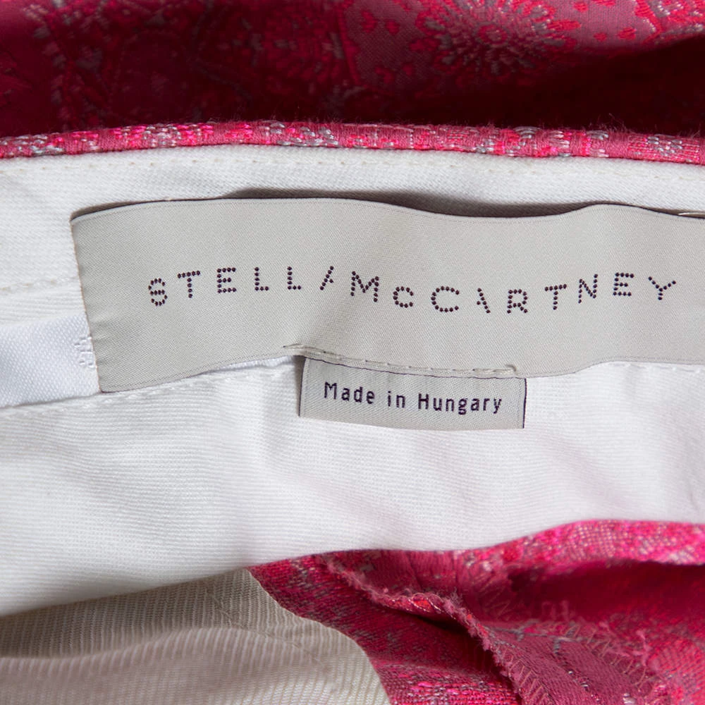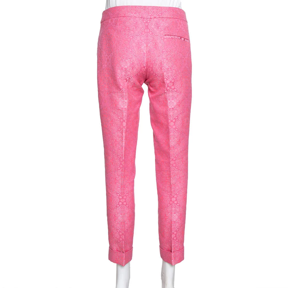 Gorgeously designed, these neon pink pants from Stella McCartney will lend a chic vibe to your closet. They offer a tapered fit and exhibit a jacquard pattern all over. They are equipped with a zip closure at the front and a slip pocket at the back. They’ll look best with a simple top and pointed pumps!