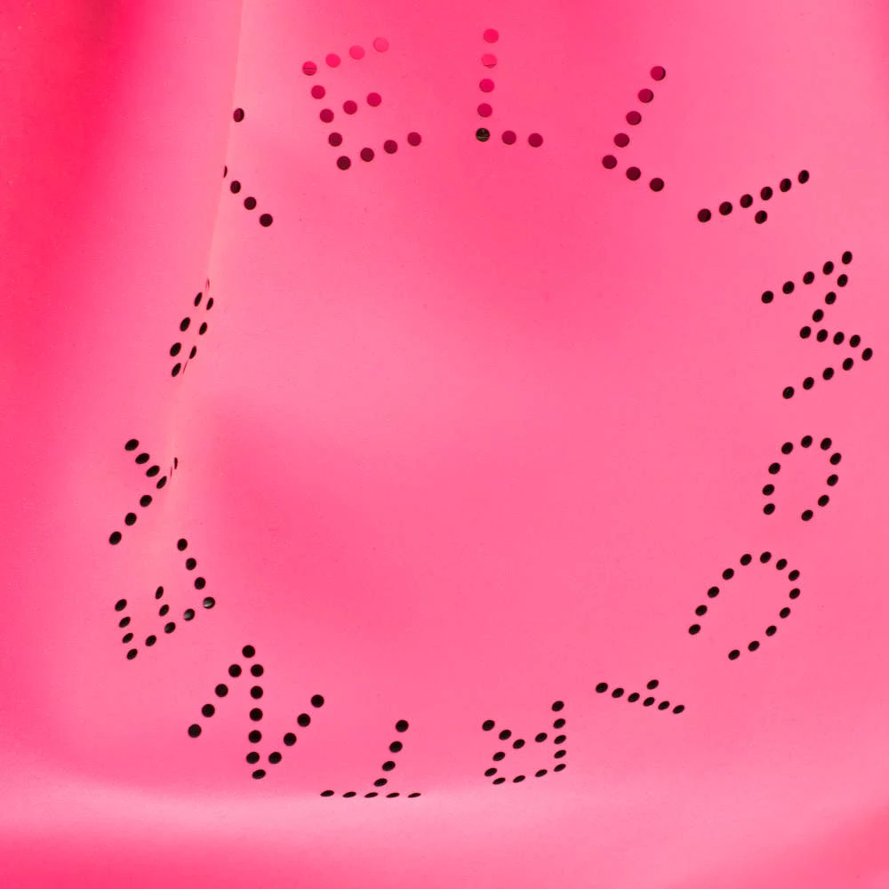 This stylish and feminine tote bag by Stella McCartney will make a statement. Crafted from faux leather, it carries a lovely hue of neon pink. This tote is styled with dual handles, perforated logo detailing on the front, gold-tone hardware and a spacious Alcantara-lined interior.