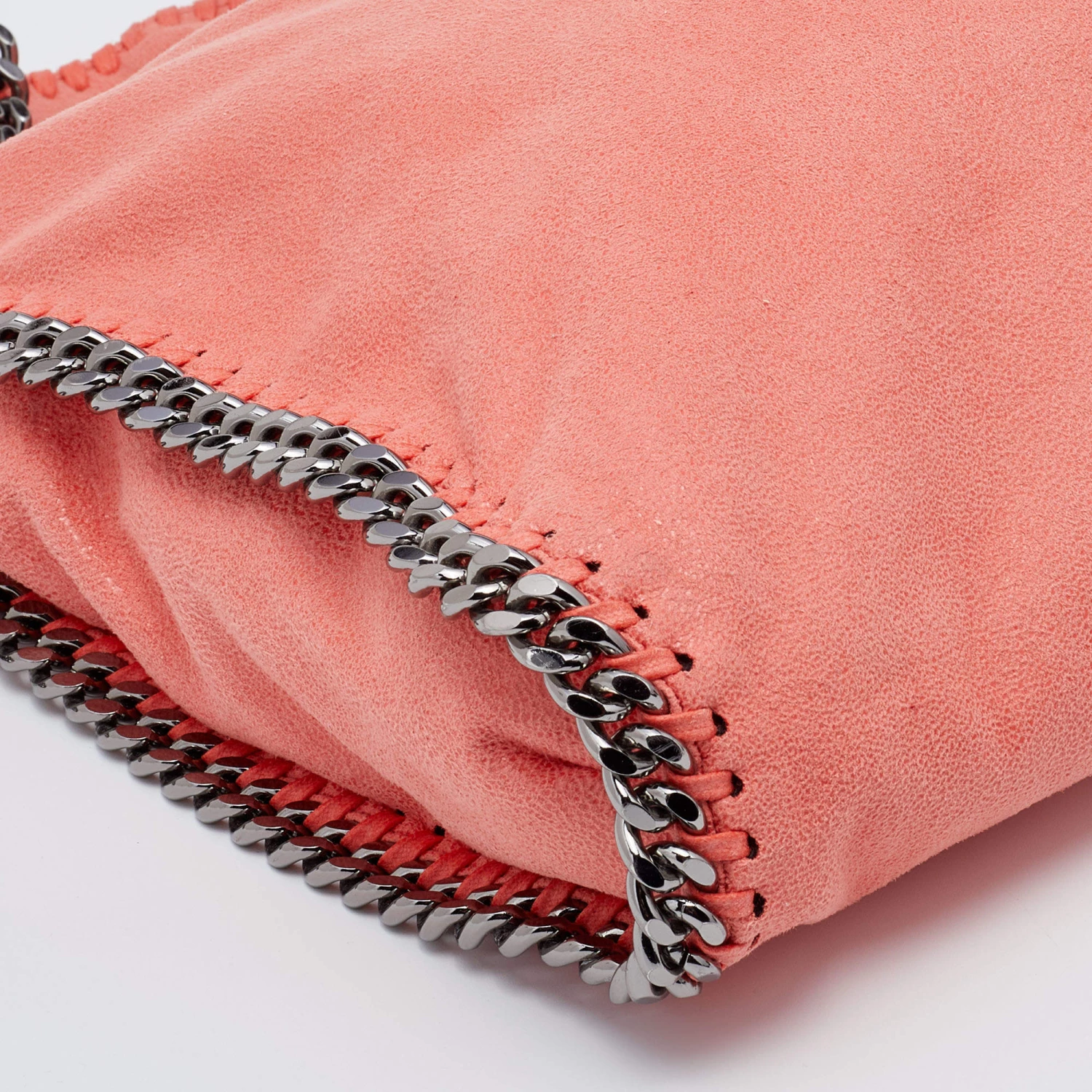 The chain whipstitch detailing beautifully outlines this Stella McCartney Falabella bag. Crafted from faux leather, it is adorned with gun metal-tone accents, and its fabric-lined interior can safely store your necessities. Carry it in a chic way with dual handles at the top.